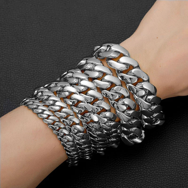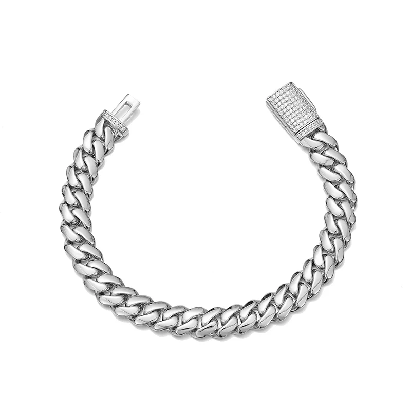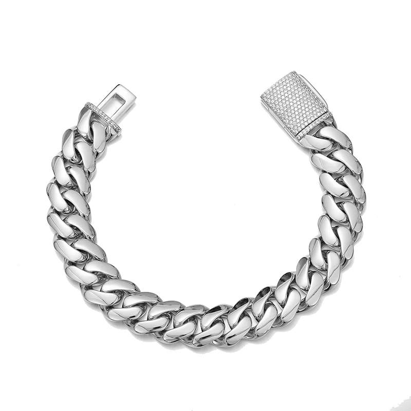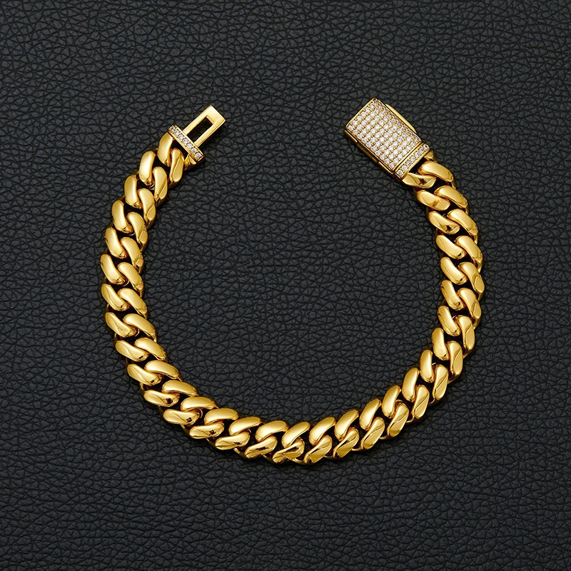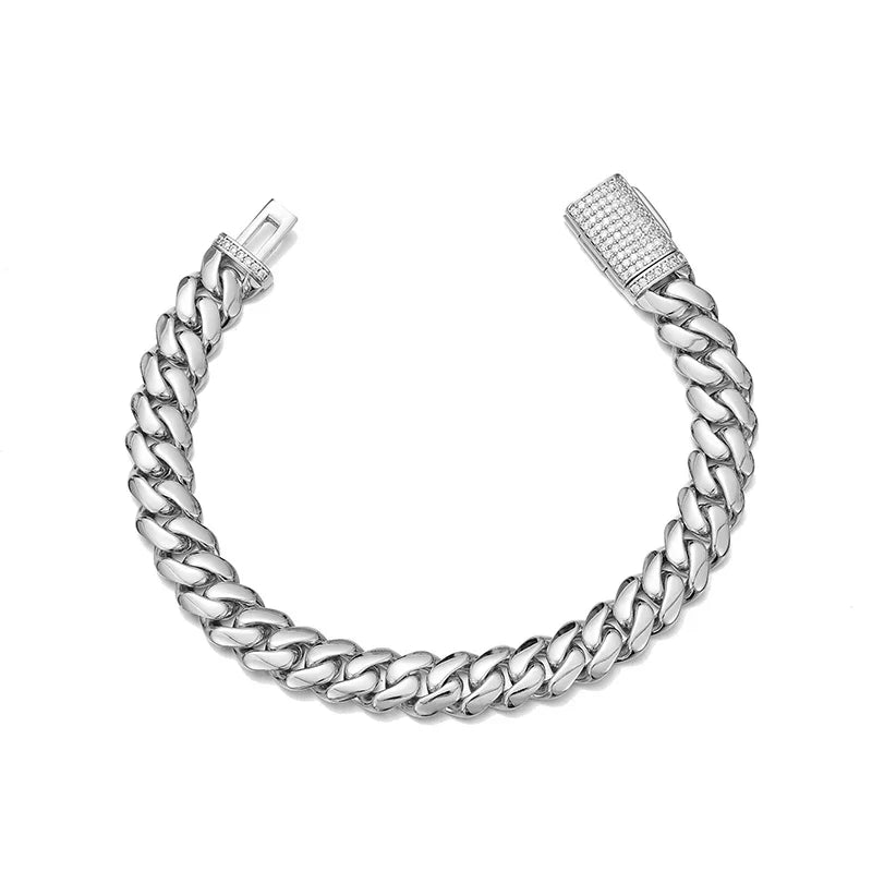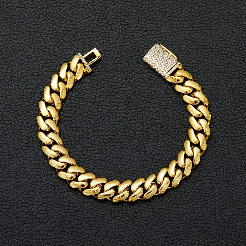 Hip Hop Rock Stainless Steel Rhombus Cuban Miami Link Chain Bracelets for Men Bling Iced Out Rapper Jewelry Gold Silver Color
