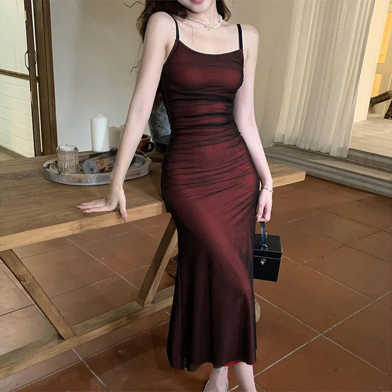 Formal Attire Dresses: Woman Evening Dress Red Mesh Gothic Elegant Party Bodycon