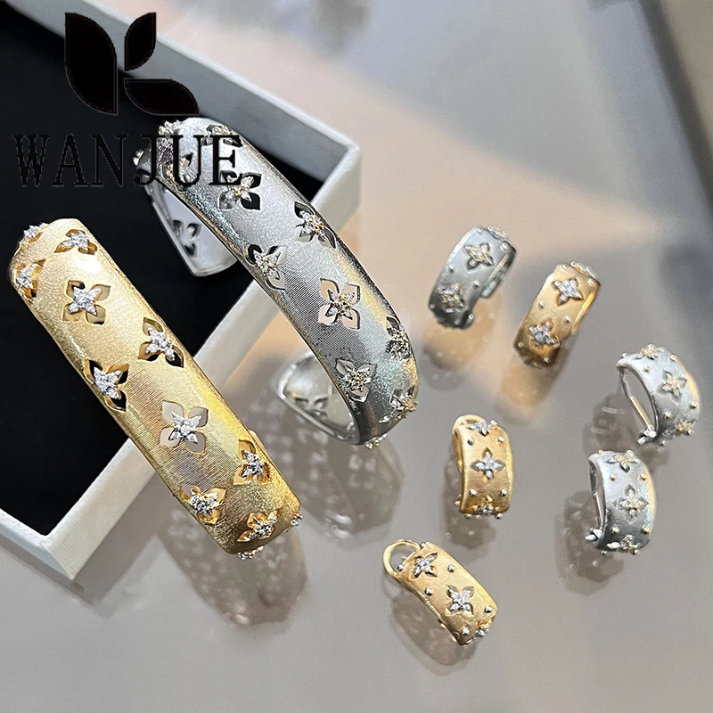 Italian hand-brushed craftsmanship palace style retro women's ring bracelet necklace earring set fashion romantic party gift