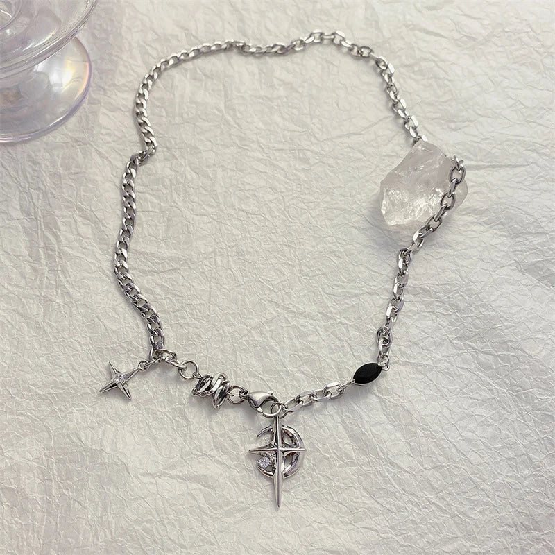 Embrace Your Style with the Cuban Figaro Chain Star Moon Pendant Necklace