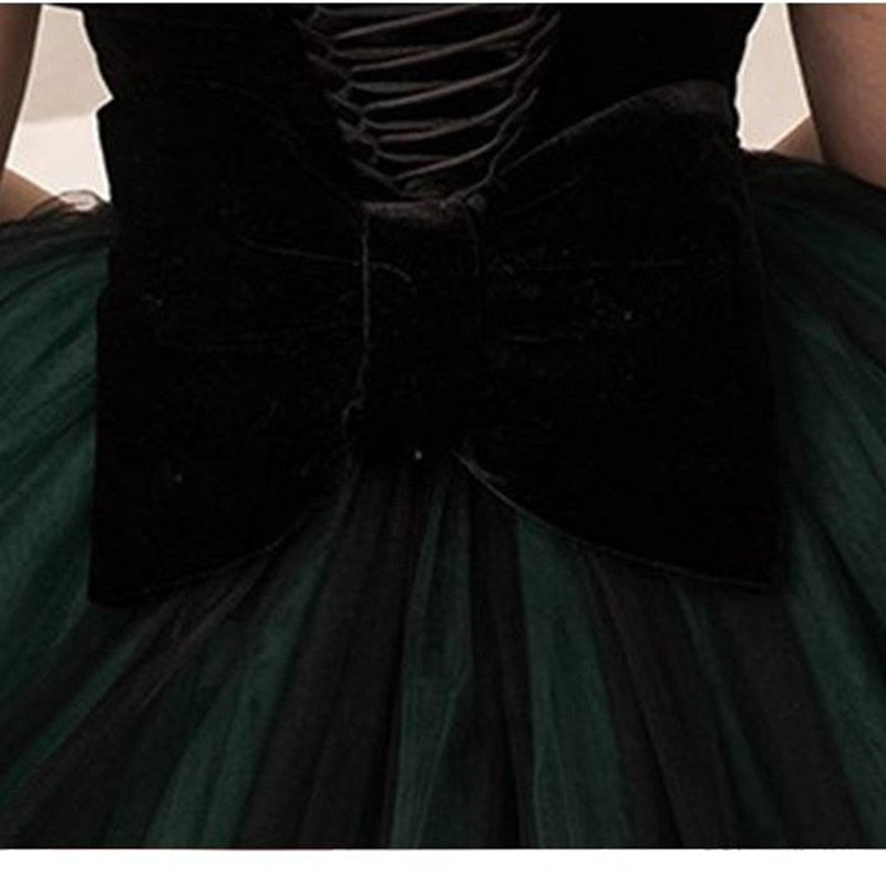 - Design: Elegant green tulle with a flowing silhouette