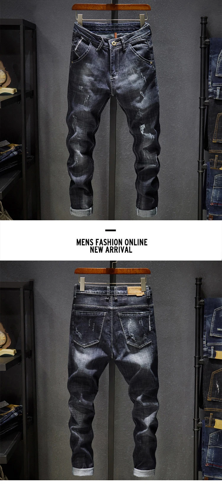 At our store, we are dedicated to providing high-quality fashion that combines style, comfort, and durability. Here’s why our Ripped Jeans Men Dark Blue Stretch Slim Fit Distressed Denim Pants stand out: