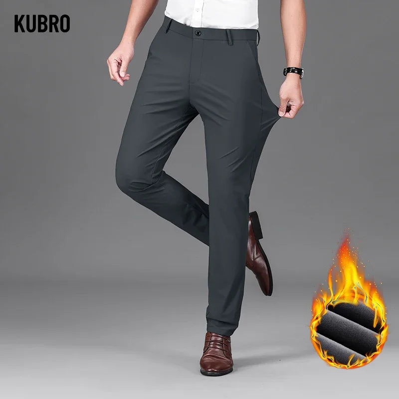 Suit Pants Men's Slim Beaver Fleece Warm Casual Pants Elasticity Straight