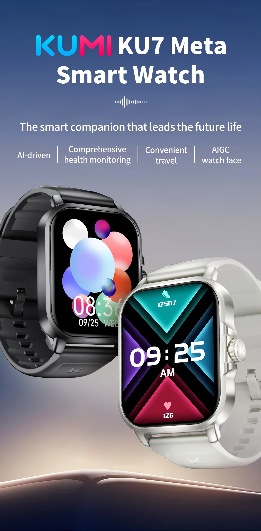 Join the KUMI Family Experience a smartwatch that goes beyond the basics. With KUMI KU7 Meta, elevate your daily routine and embrace a smarter, healthier lifestyle.