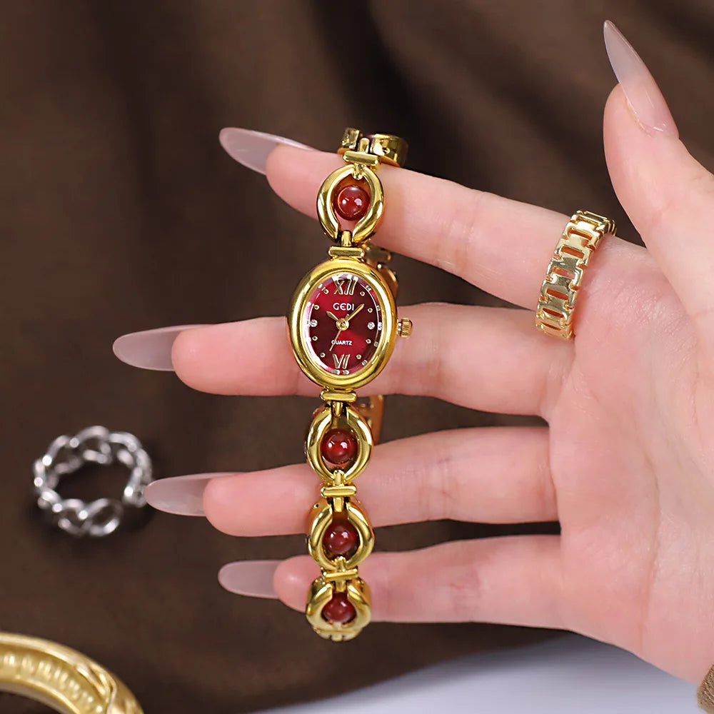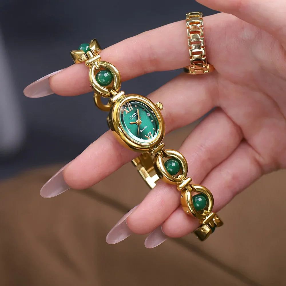 Ladies Watch Light Luxury Brand National Style Zulu Green Bracelet Advanced Bead Waterproof Women Fashion Quartz Wristwatches