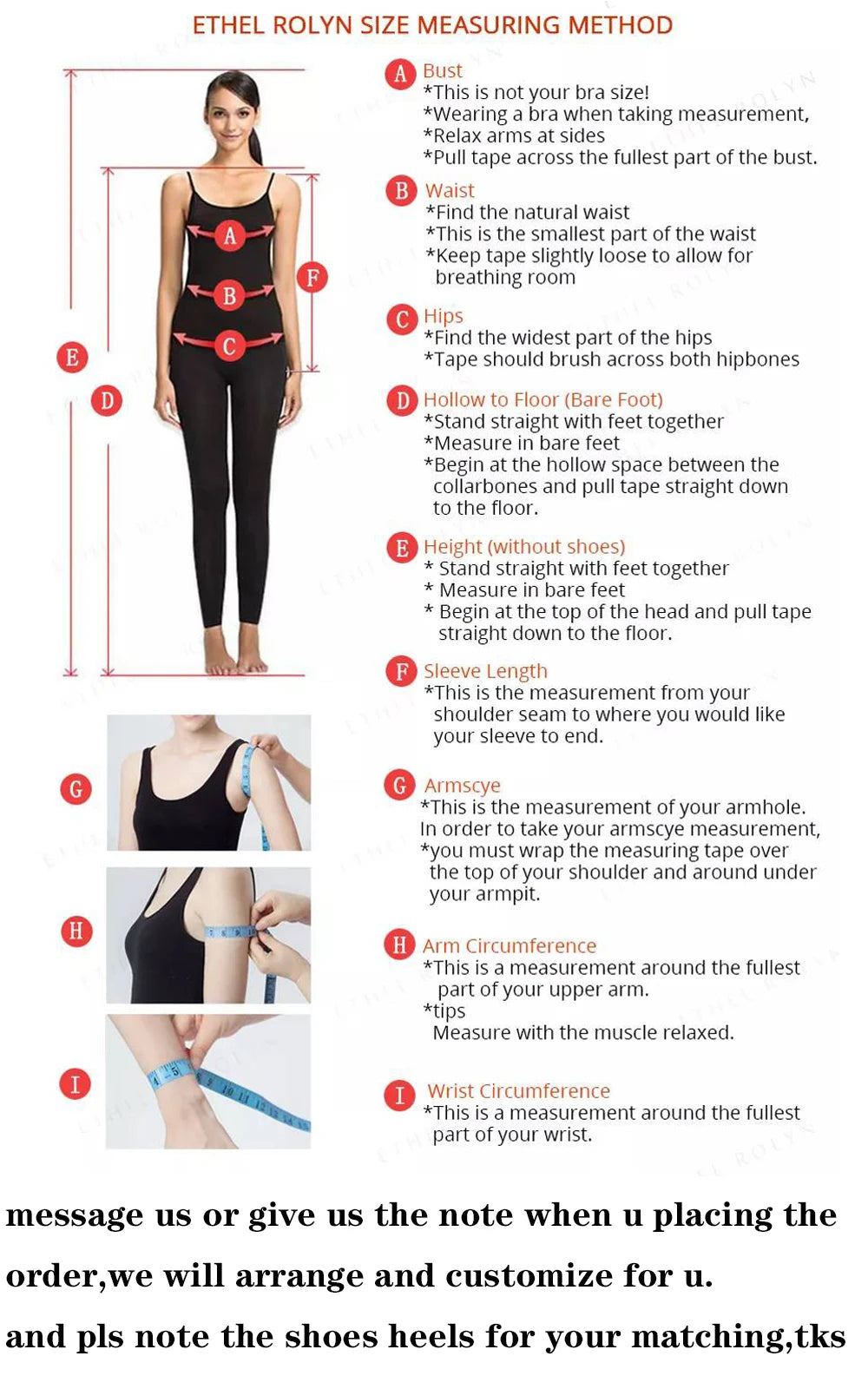 Custom Made Size Please Choose any Size and Leave a Message of Your Following Measurements :