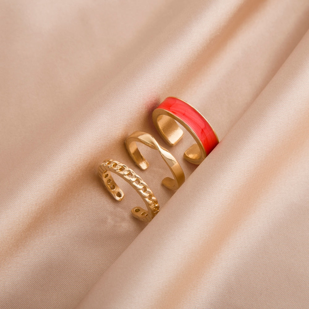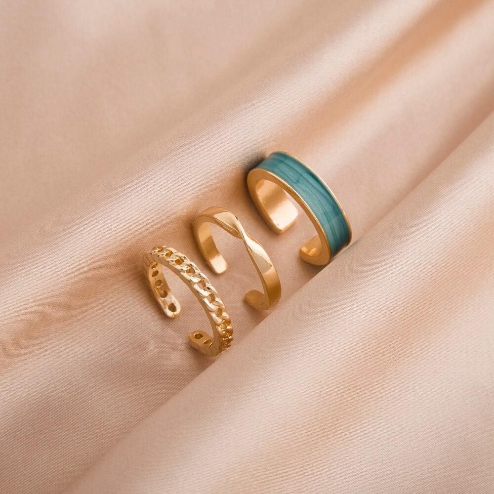 LATS Gothic Style Three Piece Opening Rings for Woman Fashion