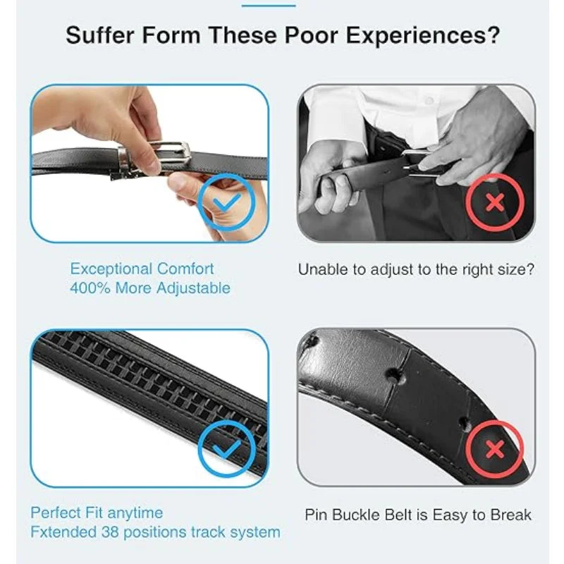 Leather belt men High Quality Genuine Leather Belts, Automatic Buckle Belt, Adjustable No Hole Belt Jeans Belt for Men