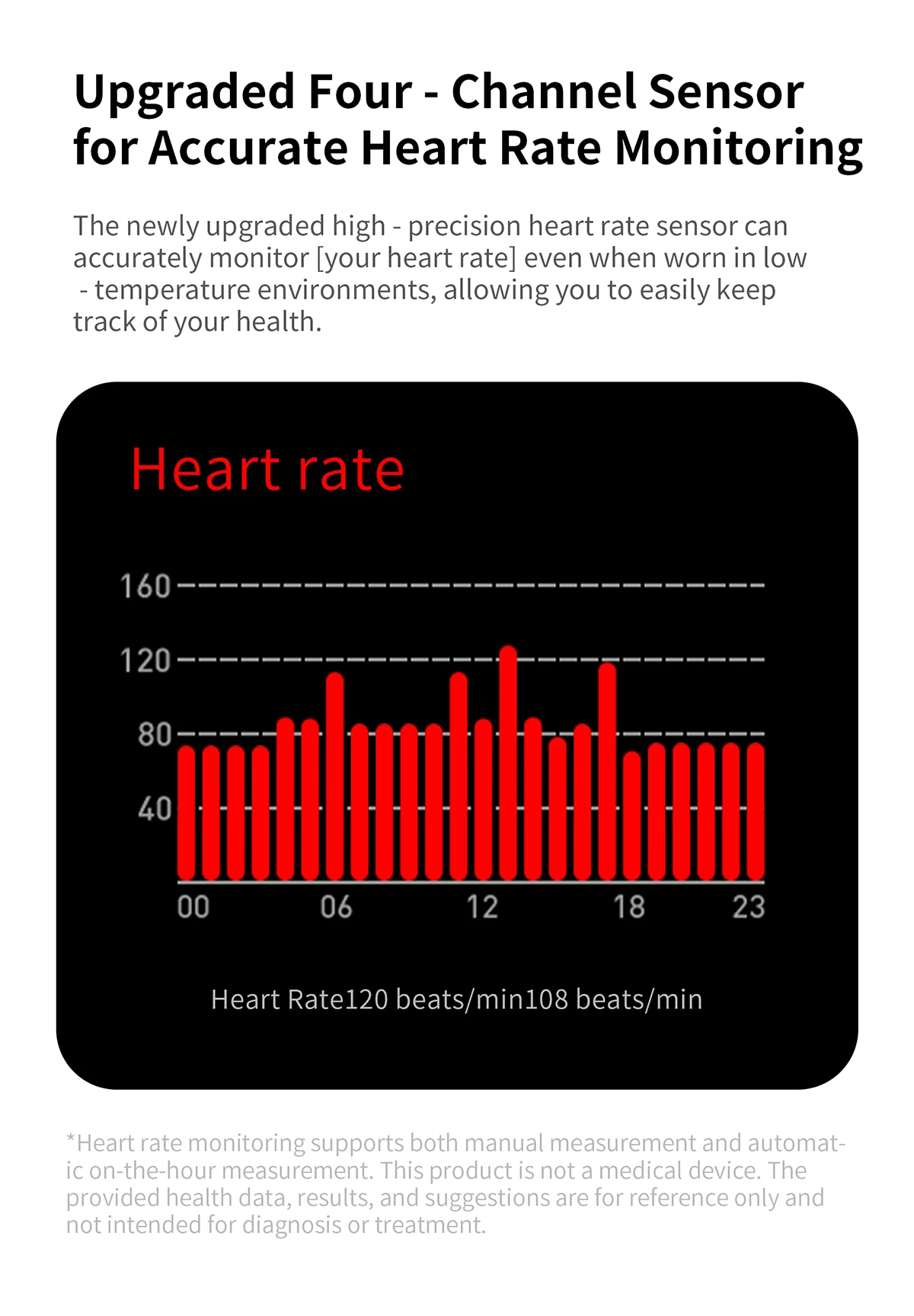 Metrics measured: Heart Rate Monitor,Women's Health Monitoring,Blood Oxygen Monitor,Sleep Monitor,Blood Pressure Monitor,Body Temperature Monitor,Stress Monitor
