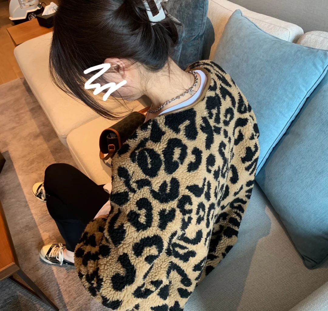Leopard Print Fur One-Piece Short Jacket Women Spring and Autumn Coats
