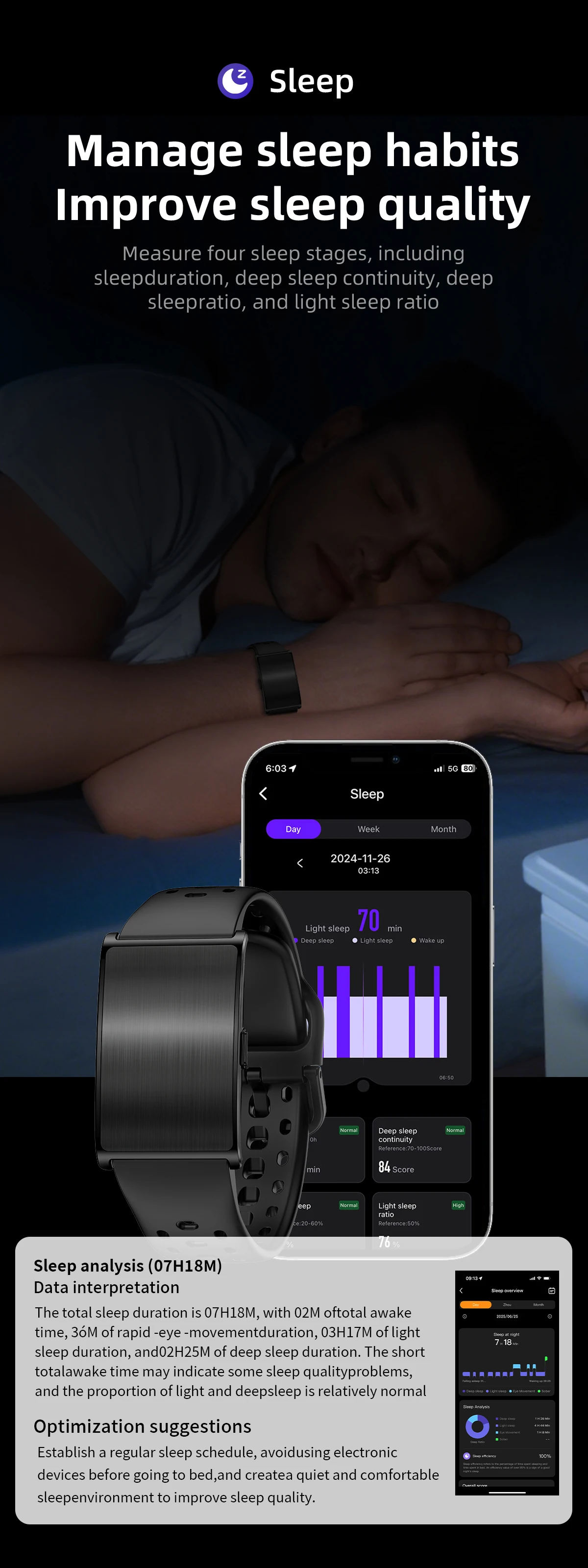 Despite its no-screen design, the LIGE smartwatch provides comprehensive health and fitness tracking. Monitor heart rate, blood oxygen (SpO2), VO2 Max, and blood pressure, all seamlessly integrated for accurate insights. It’s the best smart watch for fitness tracking and an affordable smart watch with heart rate monitor, offering a durable companion for running, cycling, hiking, and outdoor sports. Sleep tracking capabilities ensure you maintain peak performance through proper recovery.