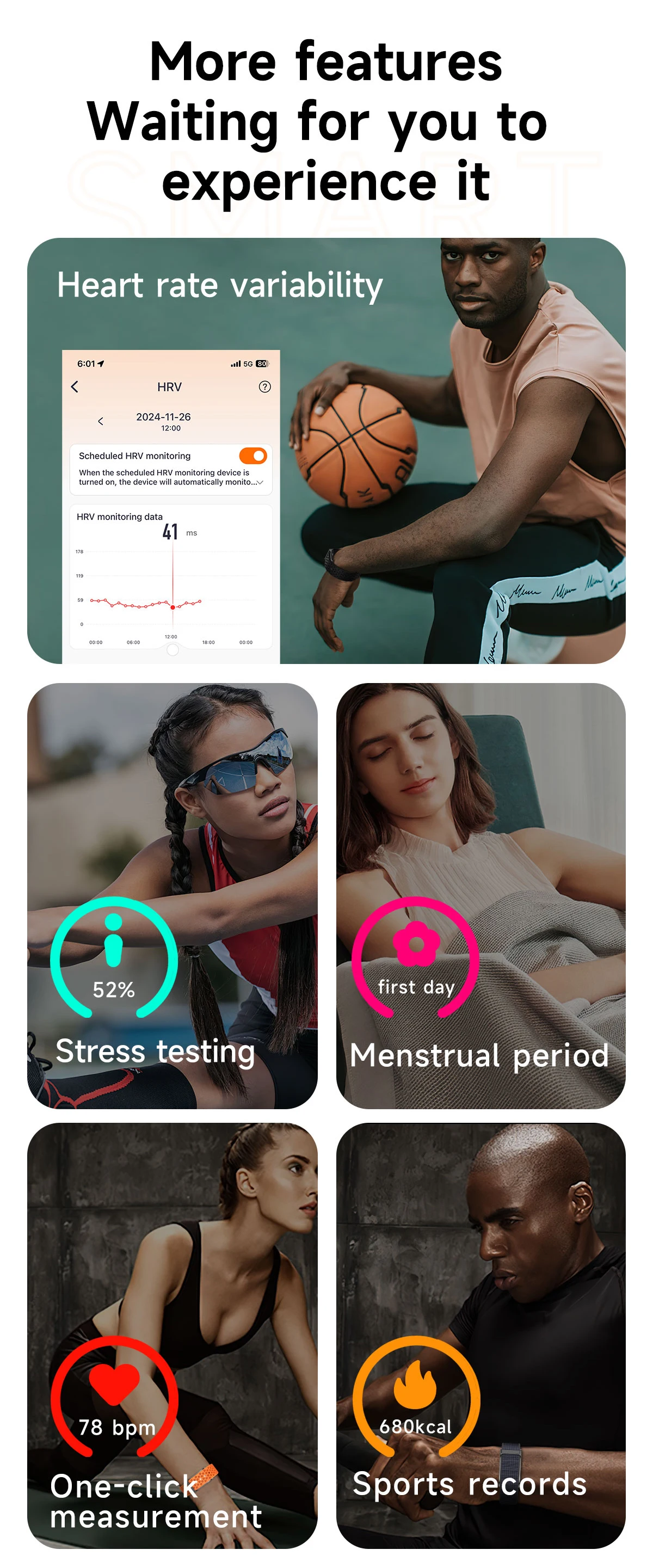 Smart Connectivity: Call and text notifications, compatible with Android and iOS