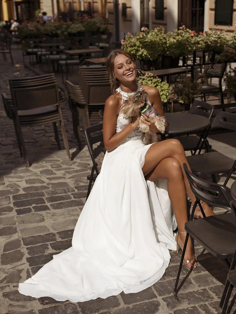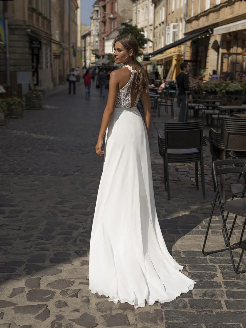 Whether you're searching for “wedding stores near me,” exploring wedding shops near me, or browsing for the best affordable wedding dresses, our chiffon gown delivers on all fronts. From its elegant high split to its flattering jewel neckline, this dress promises to be a highlight of your wedding celebration.