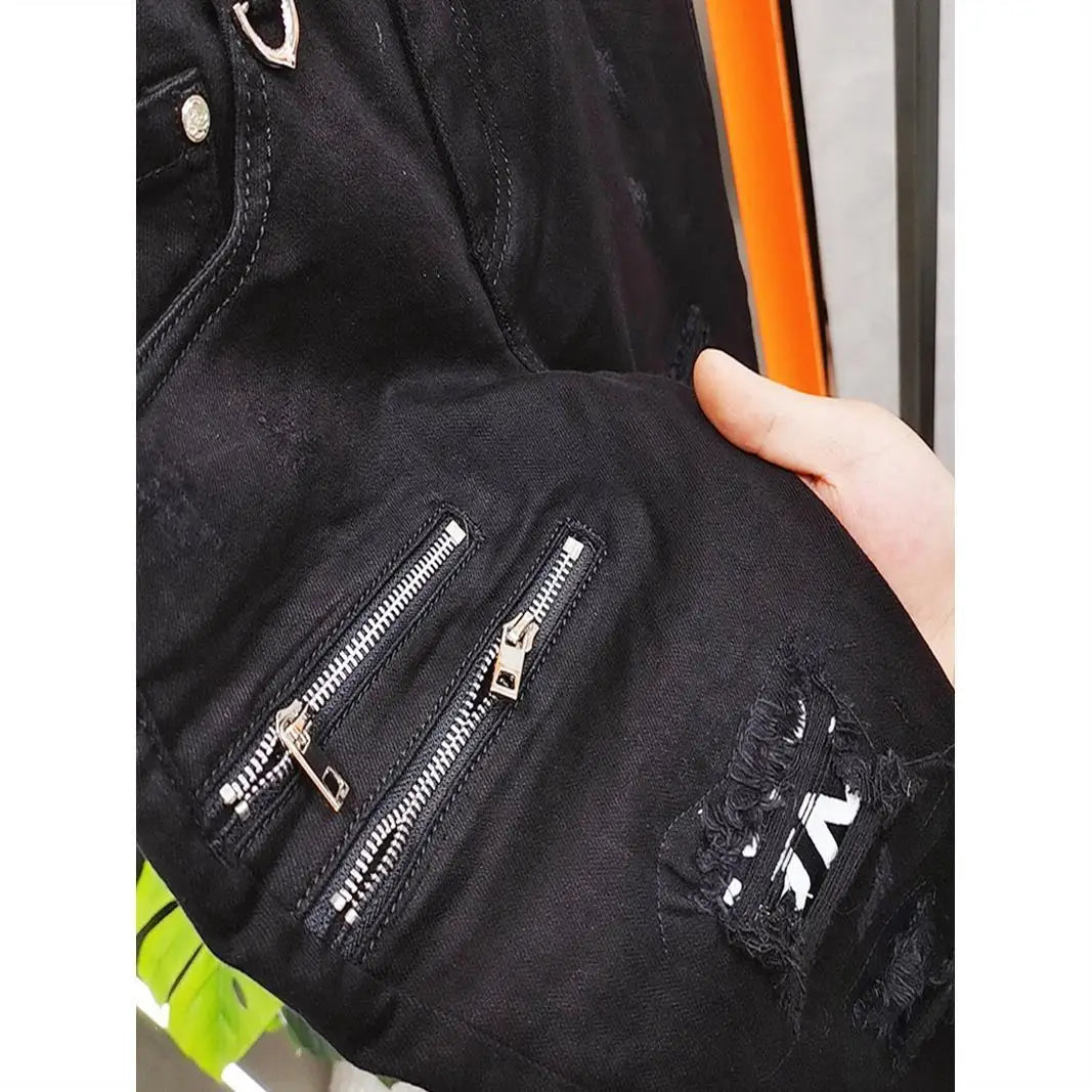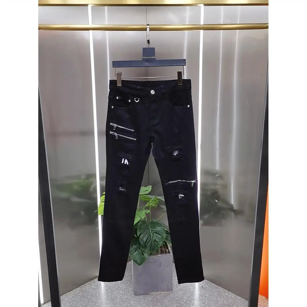 Elevate your street style with our Men's High Street Korean Black Jeans with Zipper Distressed—a cutting-edge blend of modern fashion and edgy design. Perfectly crafted to meet the demands of today’s fashion-forward men, these jeans offer both standout style and exceptional comfort.