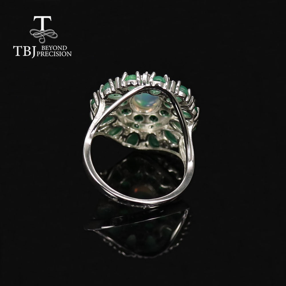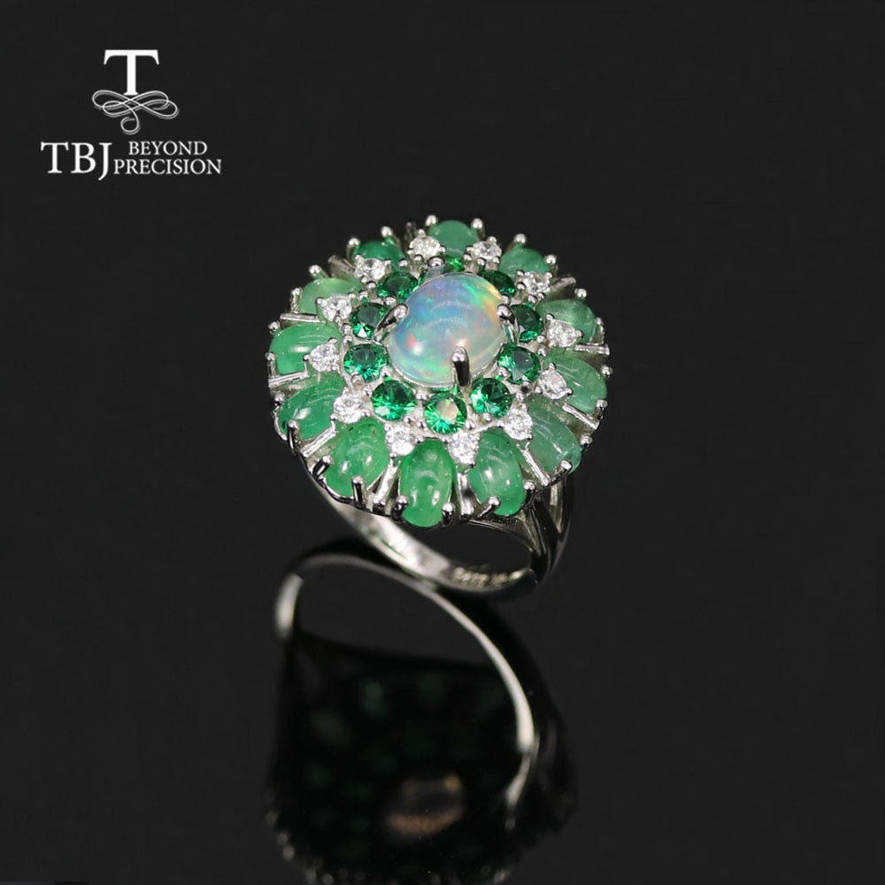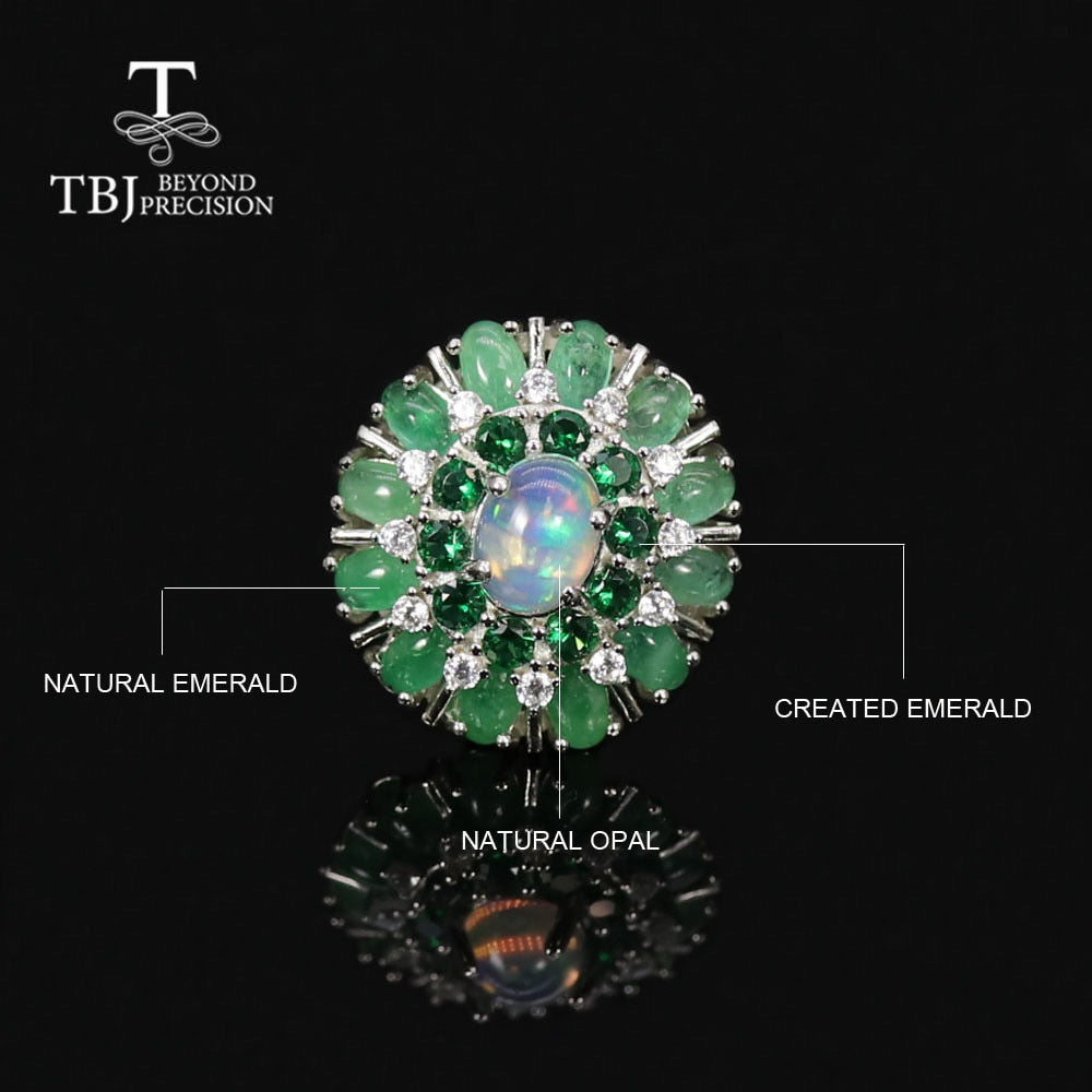 Luxury Design Natural Opal Emerald Ring in 925 Sterling Silver – Exquisite Fine Jewelry for Women
