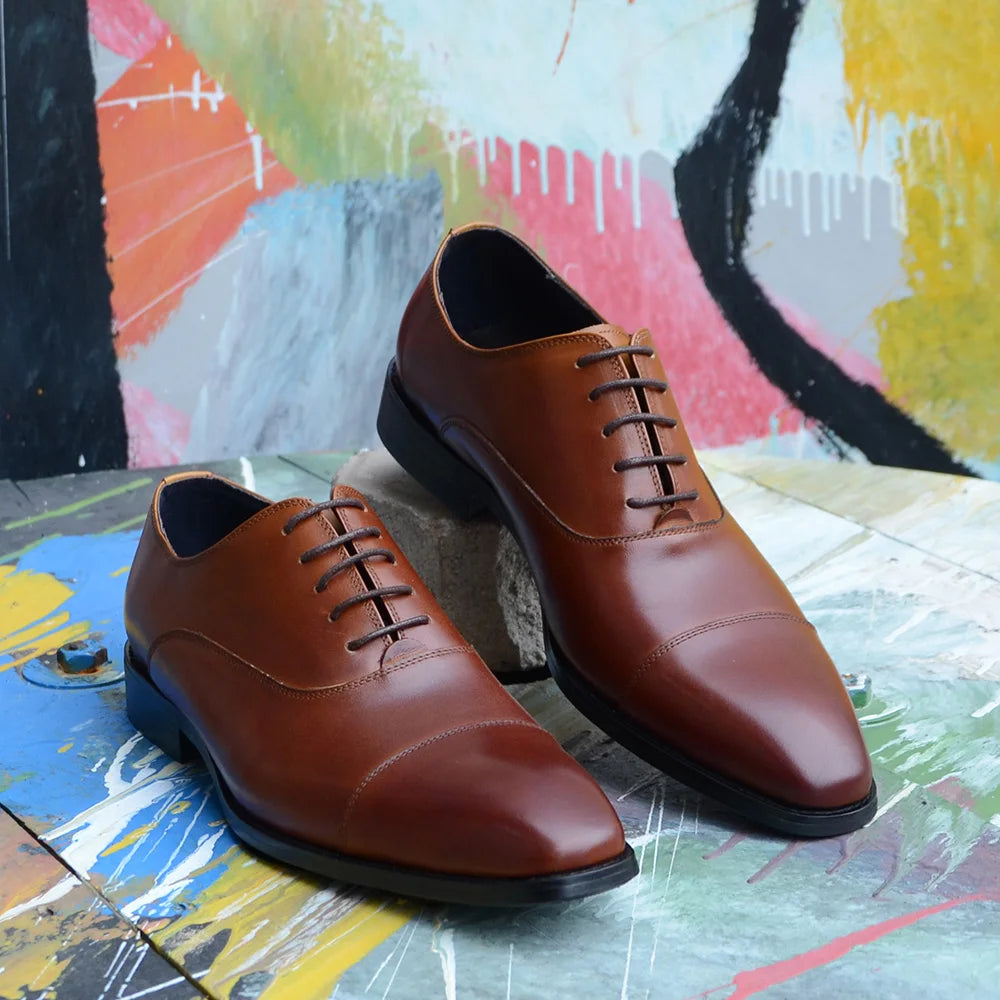 Luxury Handmade Men Dress Shoes Genuine Leather Whole Brown Cap Toe Oxford Shoes Lace Up Business Office Wedding Formal Shoes