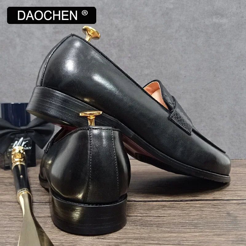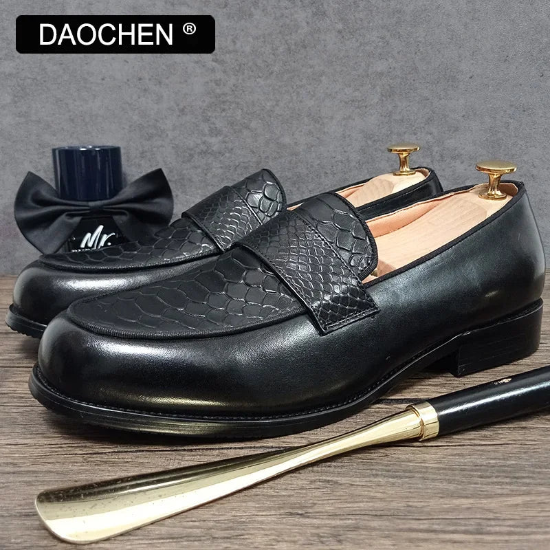 Step into sophistication with our luxury men’s loafers. Crafted from premium materials, these coffee snake print shoes seamlessly blend style and comfort. Whether you’re attending a business meeting or enjoying a night out, our loafers are the perfect choice.