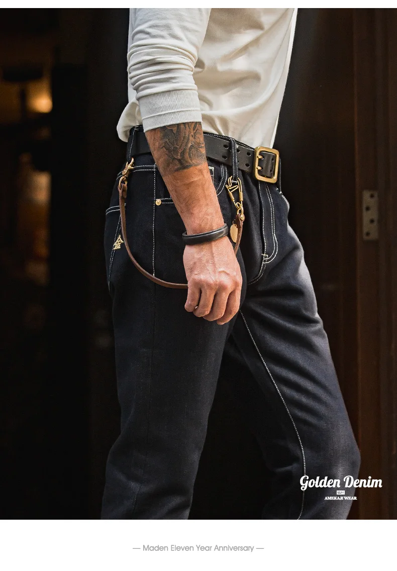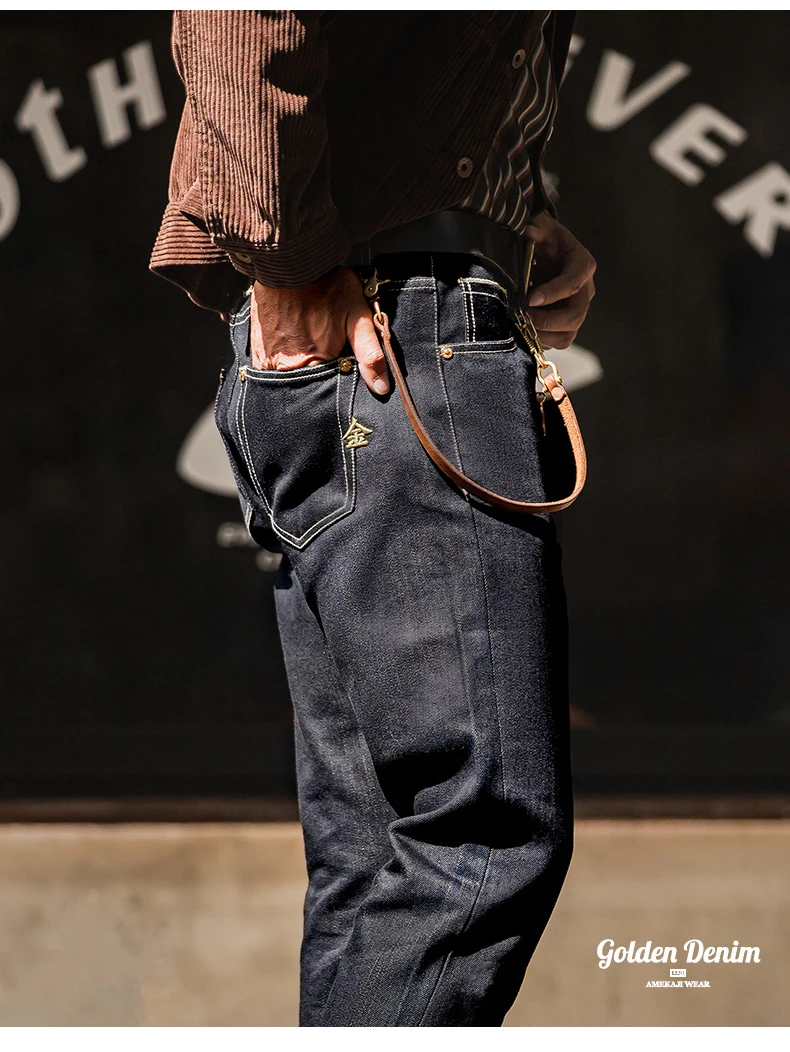 Vintage Embroidered Denim Jeans for Men – Amekaji 15oz Heavy Baggy Jeans