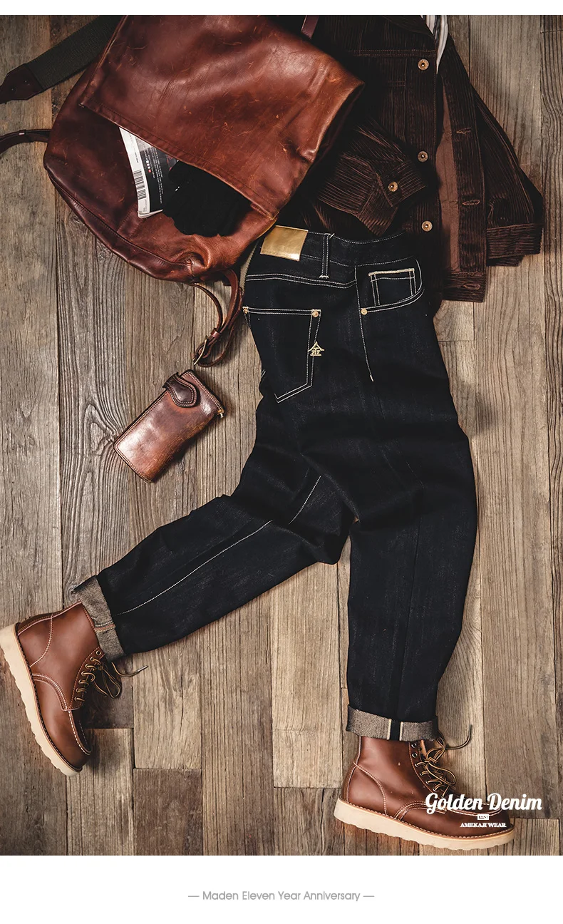Upgrade your wardrobe with the Vintage Embroidered Denim Jeans for Men from our store. These Amekaji 15oz Heavy Baggy Jeans are perfect for those who value both style and substance.