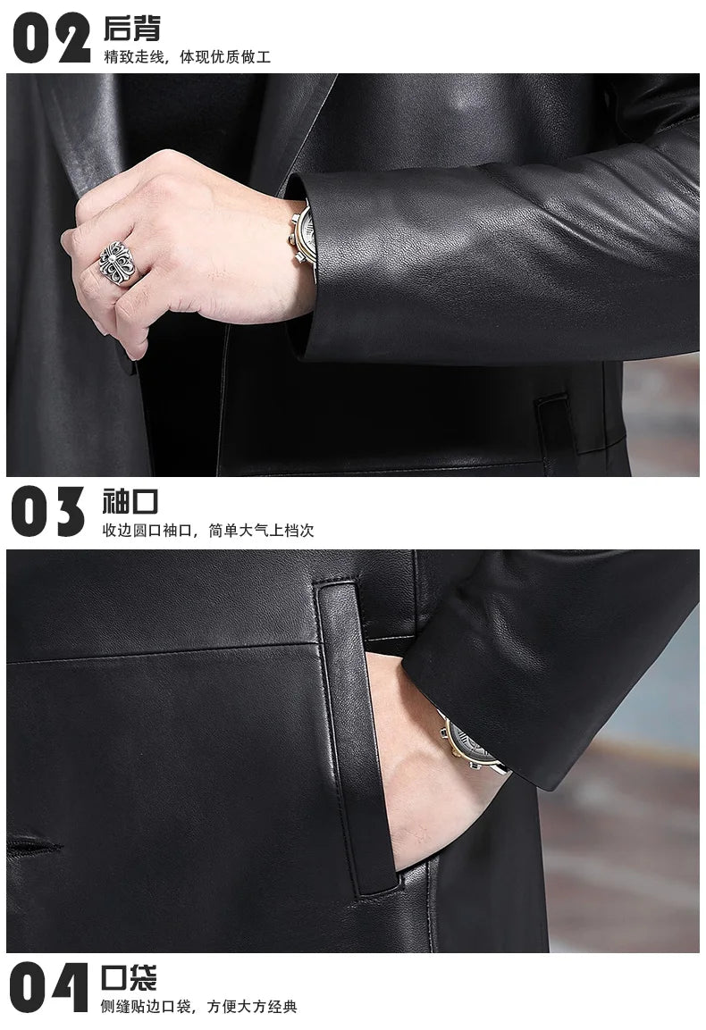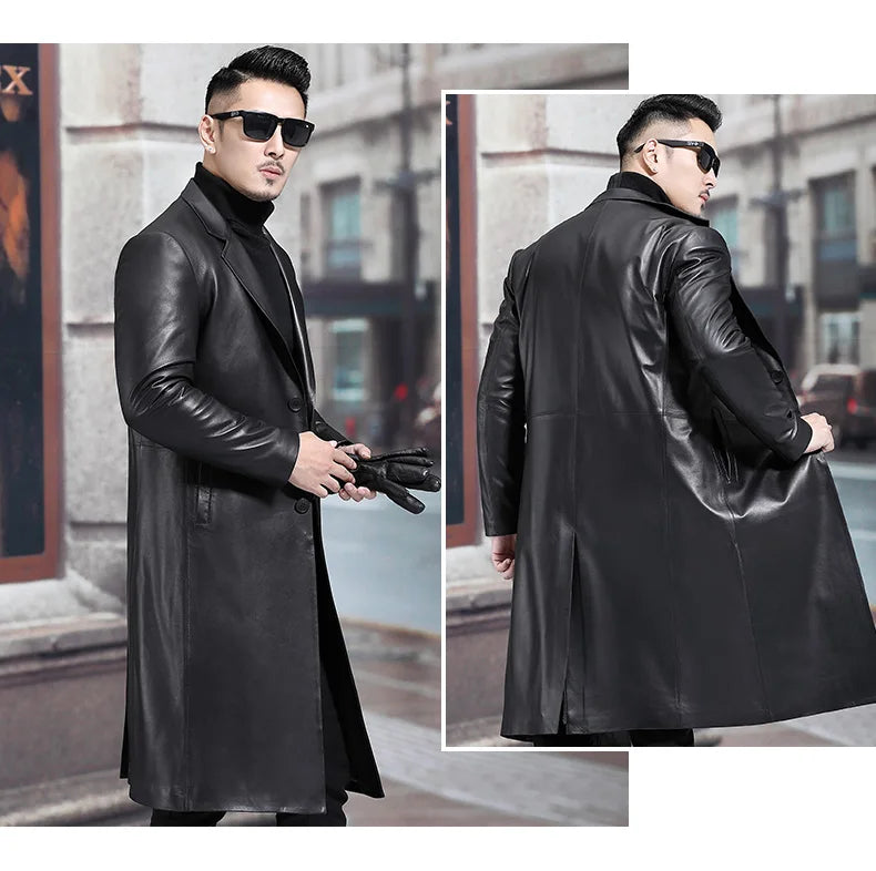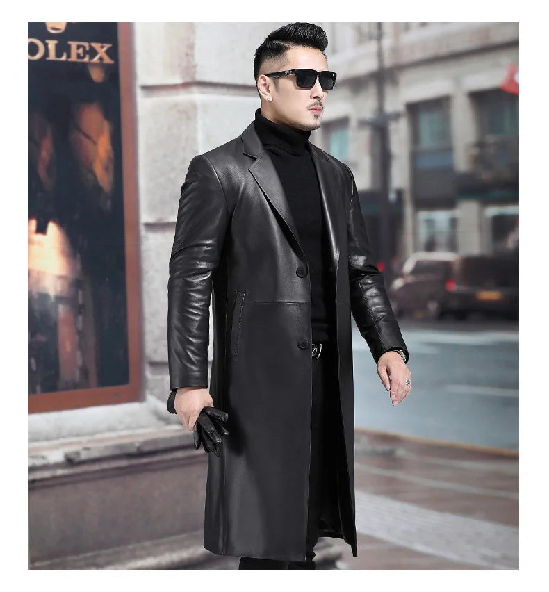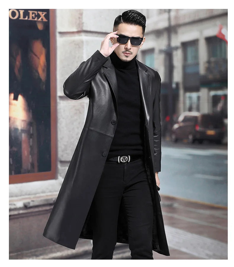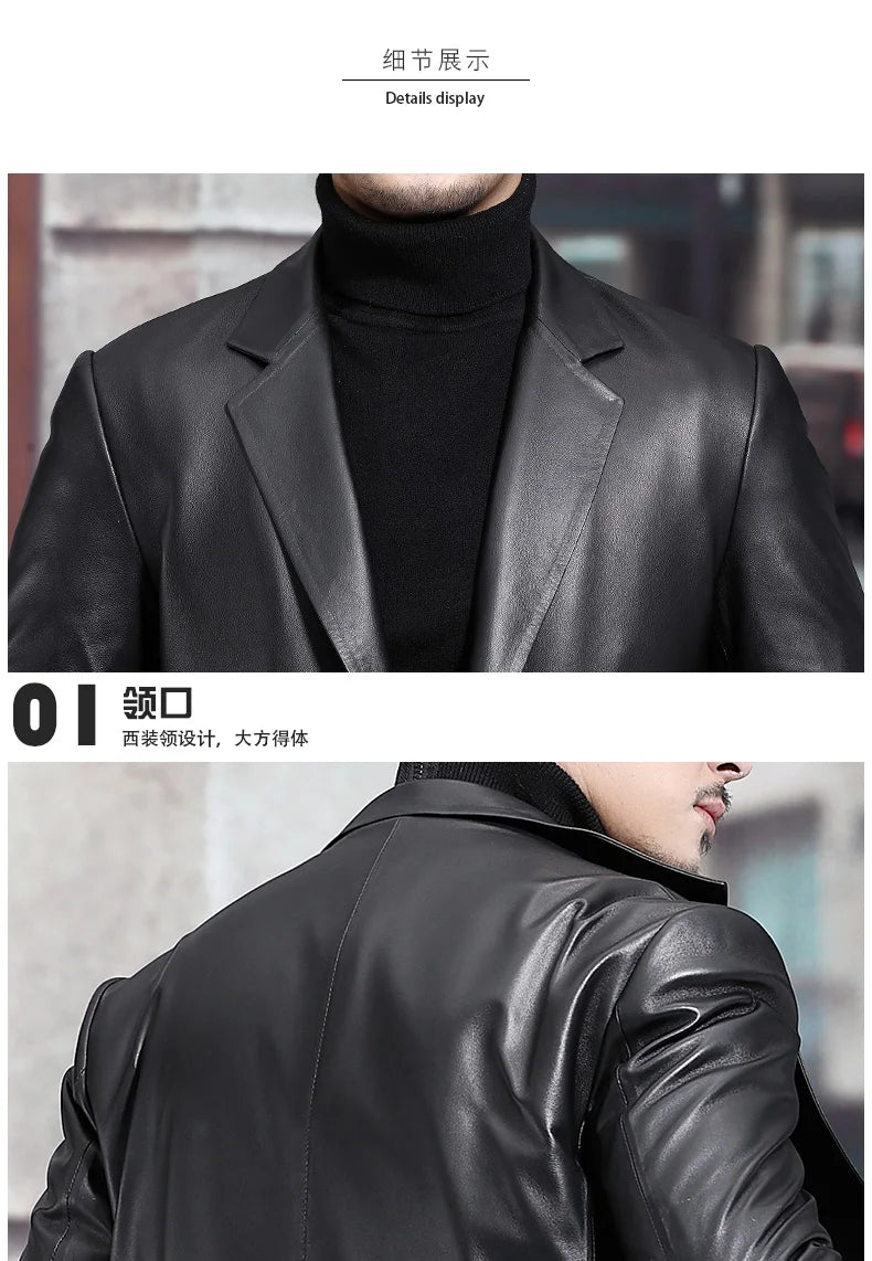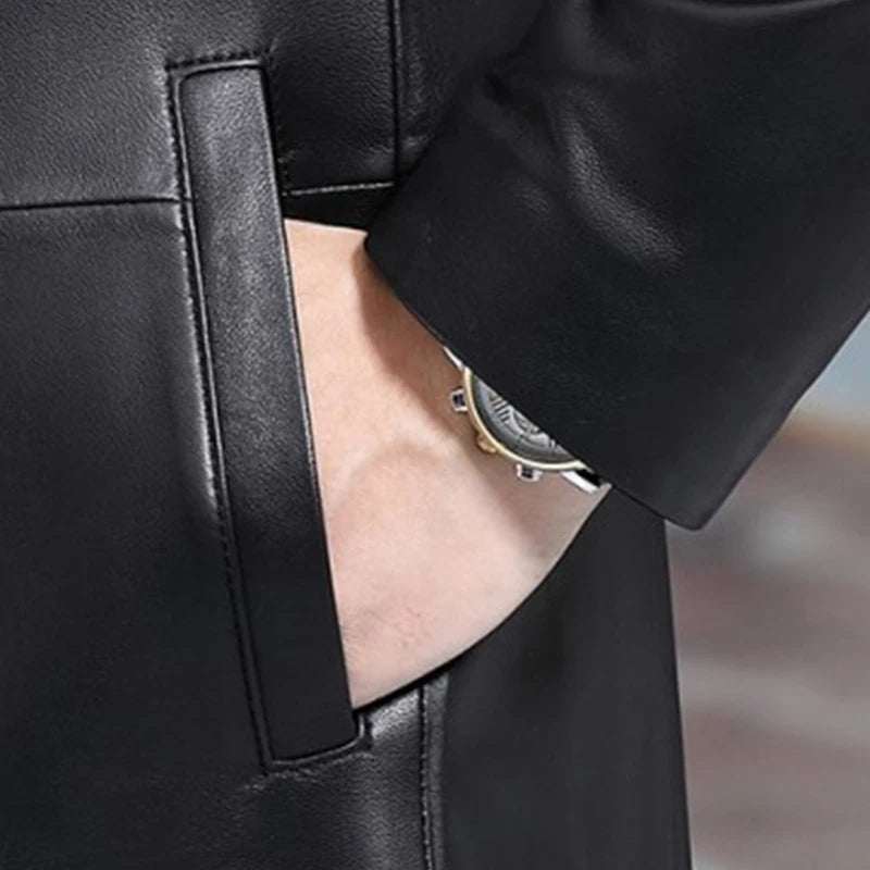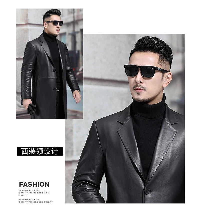 Our Long Black Men's Leather Blazer Jacket stands out as a versatile addition to your wardrobe, offering the sophistication of a letterman jacket with the practicality of a weatherproof jacket. Embrace timeless elegance with a jacket that complements both professional and casual settings.