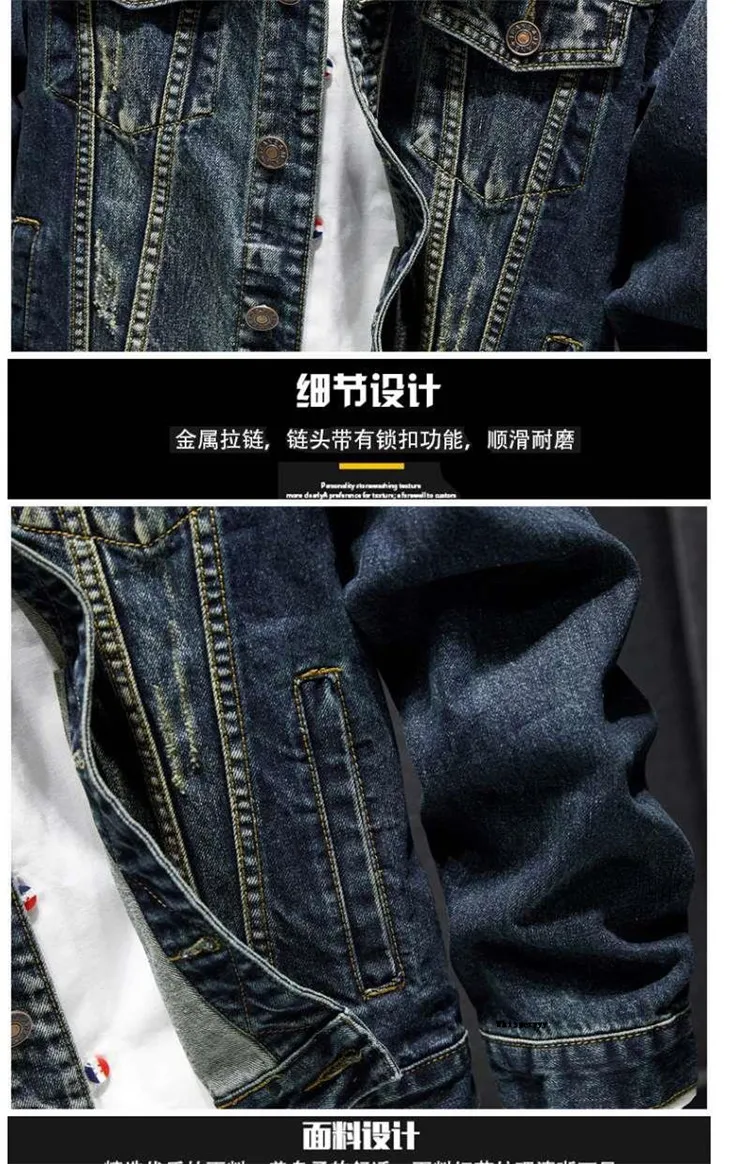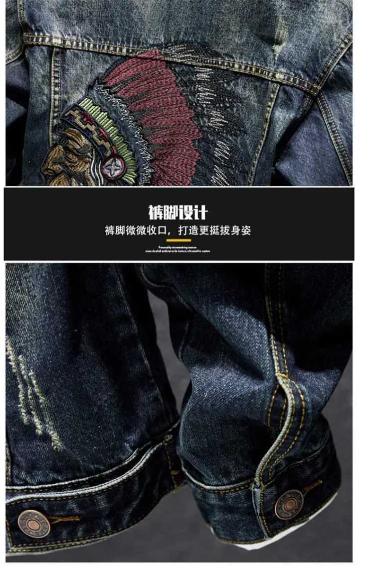 Upgrade Your Wardrobe with Our Men Fashion Denim Jacket Embroidery Ripped Slim Jeans Coat for Spring and Autumn