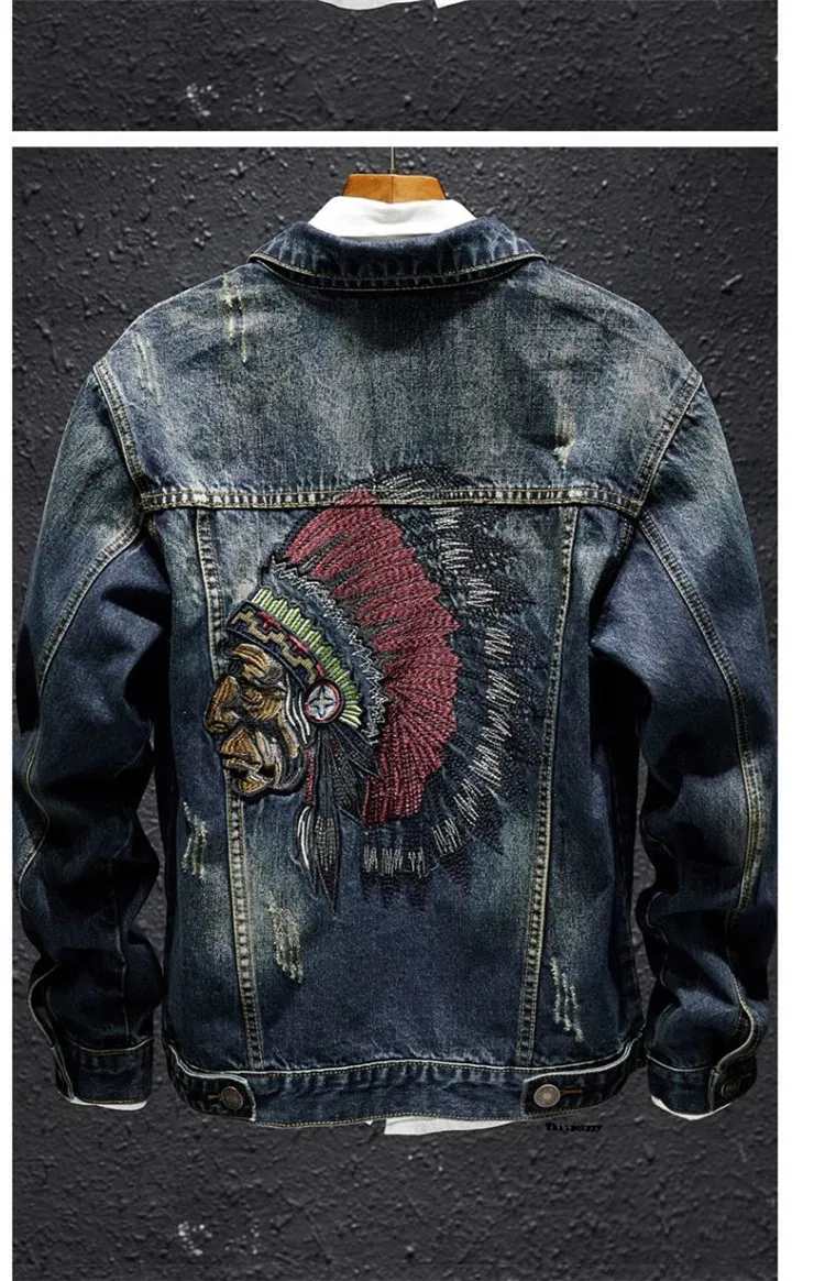 Step up your style game with our Men Fashion Denim Jacket Embroidery Ripped Slim Jeans Coat, perfect for the transitional seasons of spring and autumn. This jacket combines modern fashion with classic denim, making it a must-have for any wardrobe.