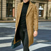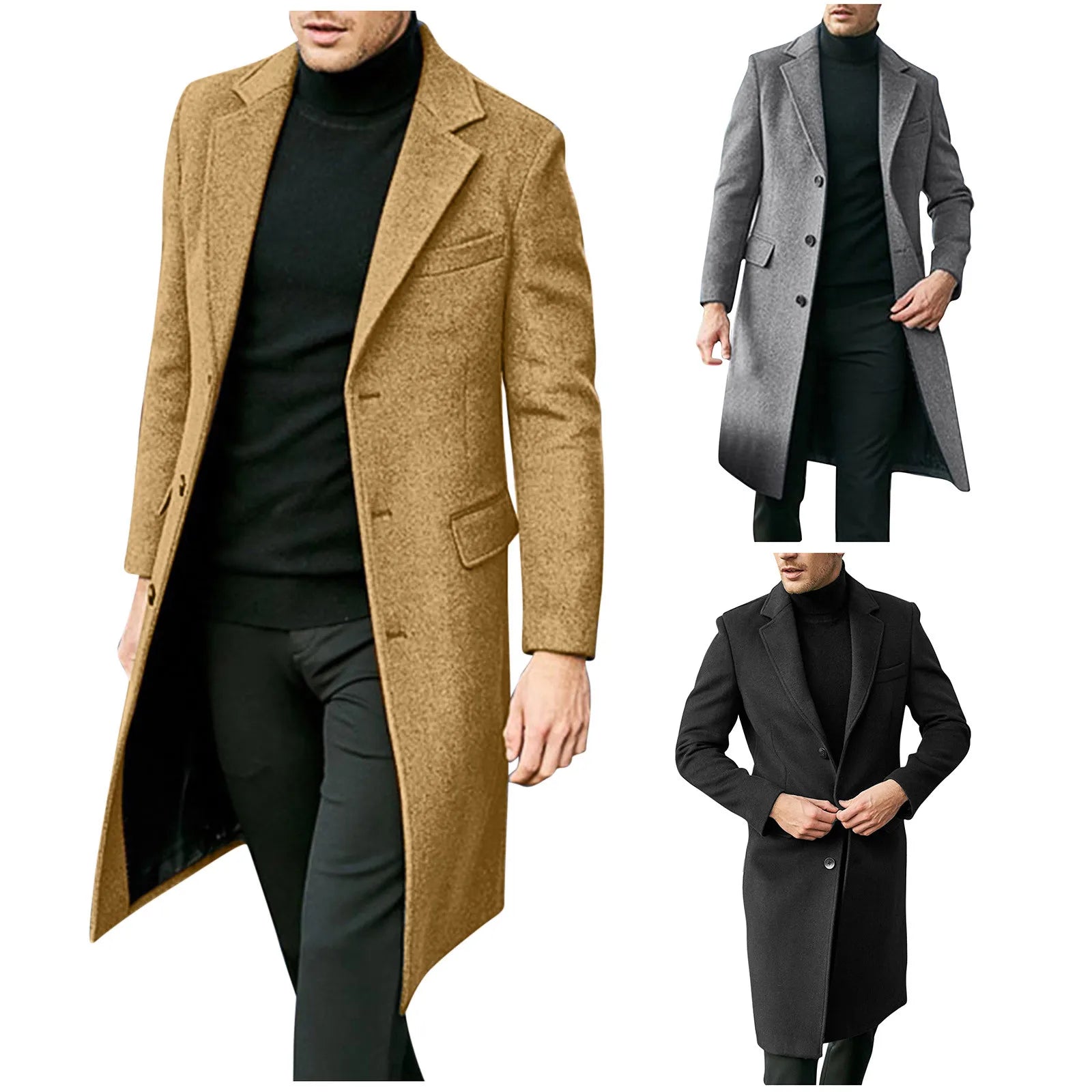 Men's British Style Solid Color Long Coat Fashionable Warm Woolen Overcoat