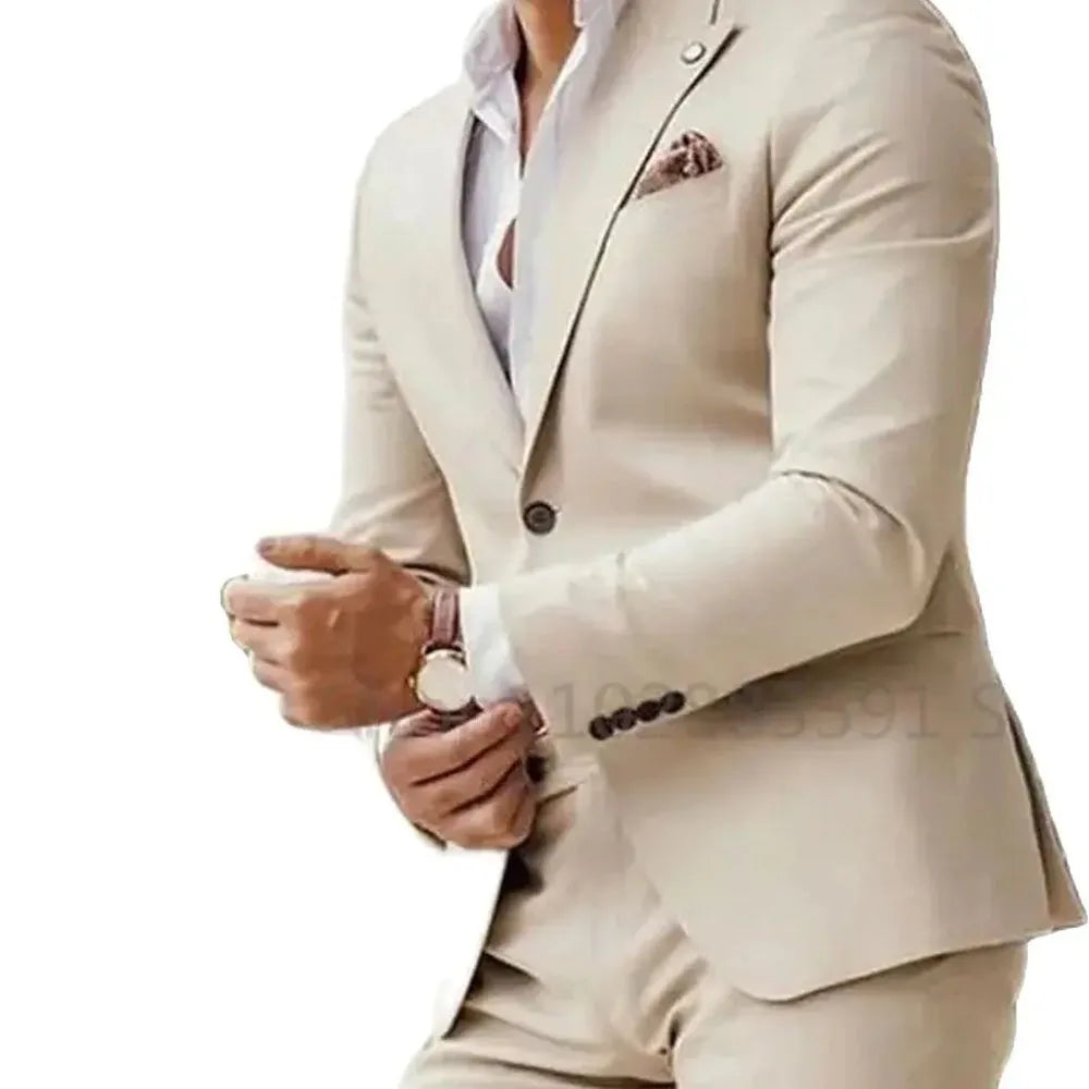 Refined Coastal Charm: The Beige Slim Business Men's Suit for Your Special Occasion