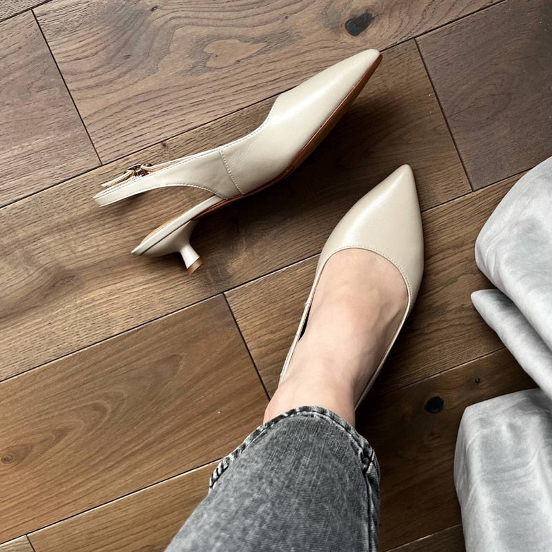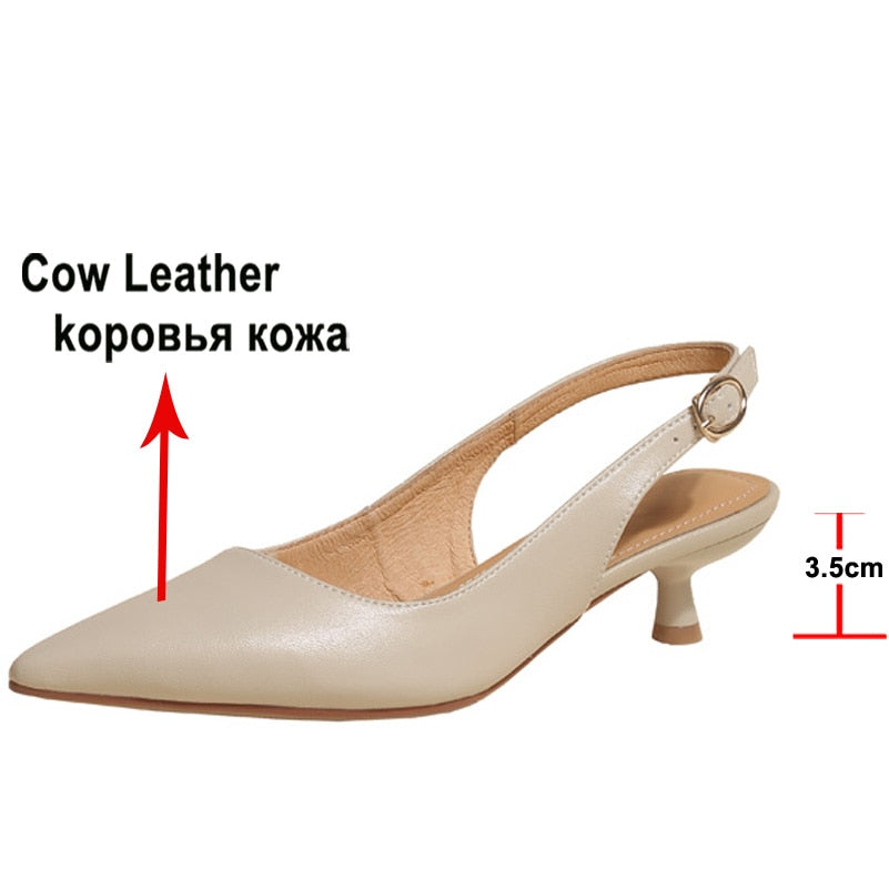 Elevate Your Style with Our Women Slingbacks Shoes: Cow Leather Buckle Thin Heels
