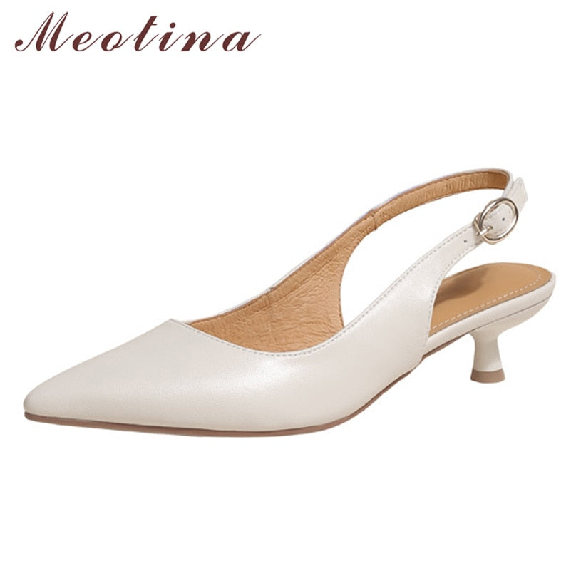 Meotina Genuine Leather Women Slingbacks Shoes Cow Leather Buckle Thick Heels Pumps Pointed Toe Med Heel Ladies Footwear Spring
