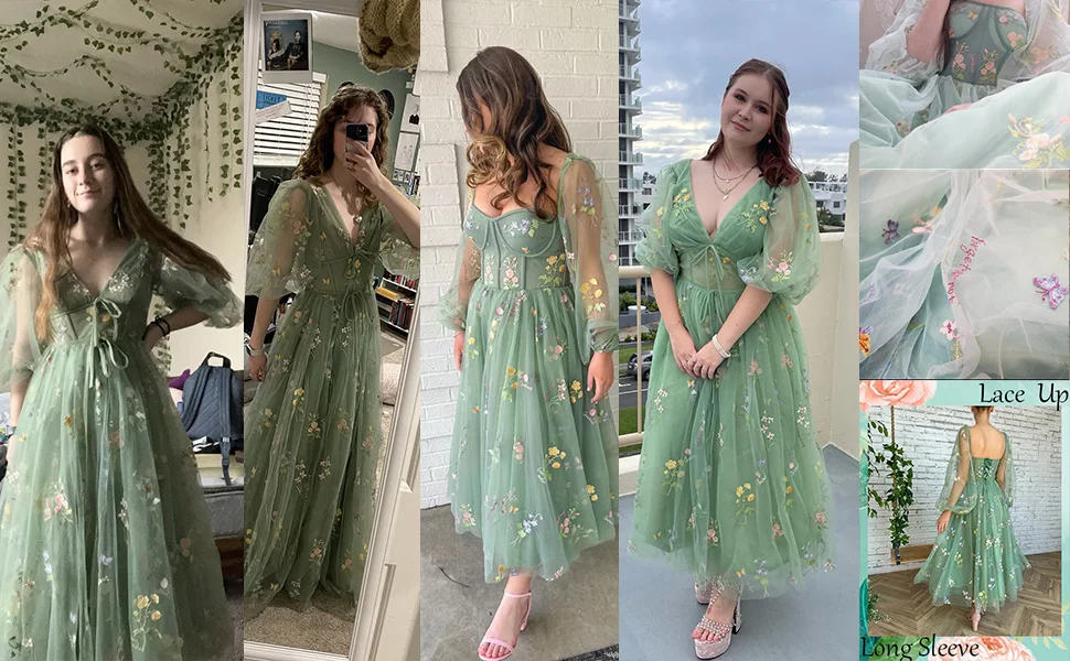Our green prom dress is also an excellent option for evening dresses for women, offering a chic and sophisticated look for any evening event. The puff long sleeves and elegant silhouette make it a standout piece among formal dresses for women. For those looking for cheap prom dresses, our collection offers affordable options without compromising on style. Enjoy free shipping and discounted prices to make your shopping experience even more delightful. Don't miss out on our Black Friday offers for incredible deals on this stunning gown.