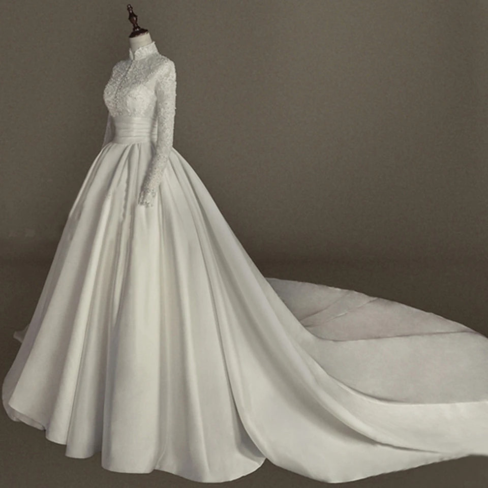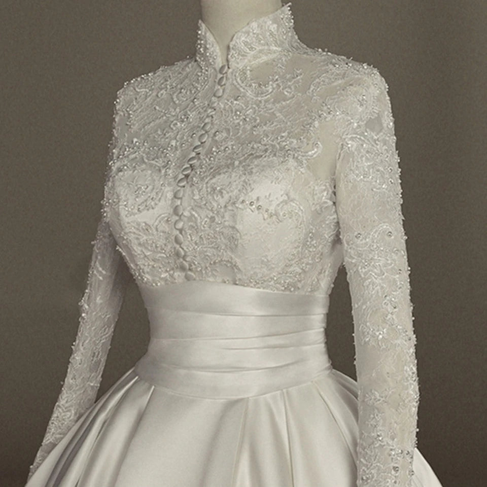 This long sleeve ball gown is a canvas for creativity, offering plenty of ways to accessorize and personalize your look. Pair it with stunning bridal accessories or elegant veils to elevate the ensemble. Perfect for every occasion, this gown transitions seamlessly from ceremonies to receptions. Whether you’re celebrating at wedding stores near me or an exclusive destination, its floor-length design promises to make a statement.