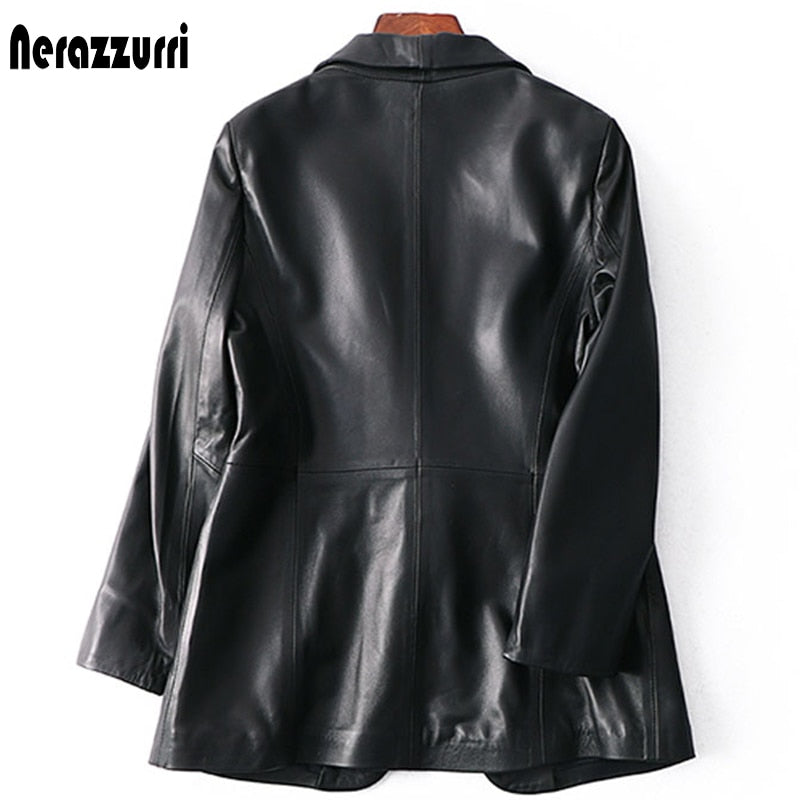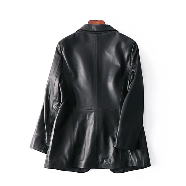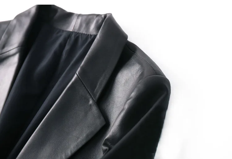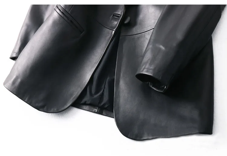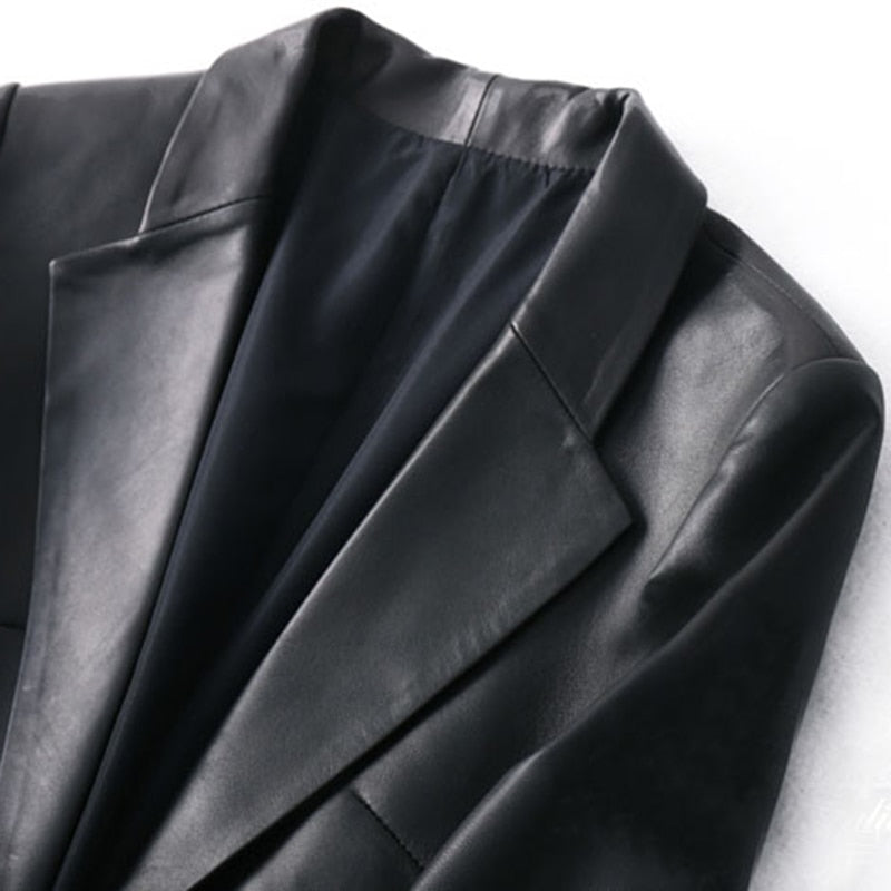 Upgrade your wardrobe with our Spring Autumn Black Leather Blazer for Women. This single-button, slim-fit blazer is designed to offer a sleek and sophisticated look, perfect for both professional and casual settings. Crafted from high-quality leather, this blazer ensures durability and style.