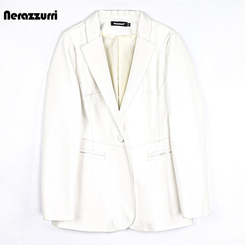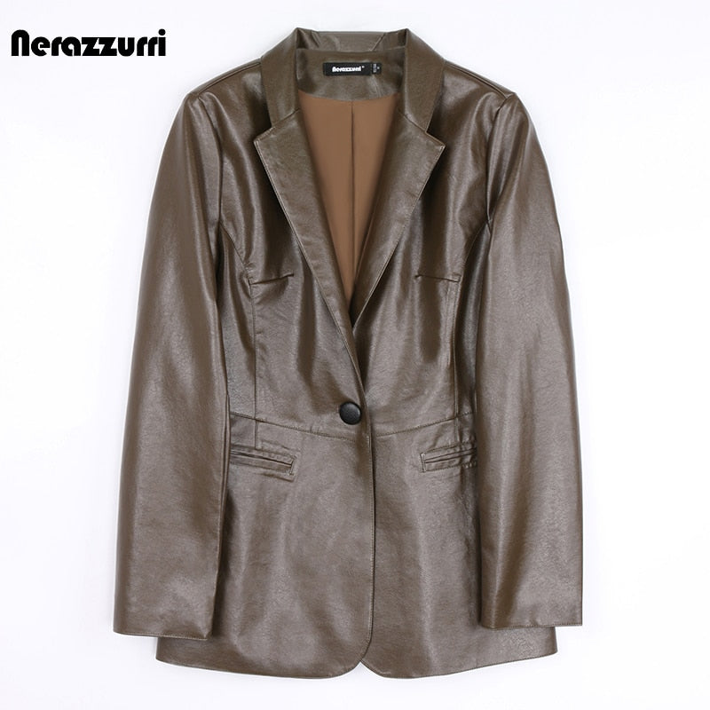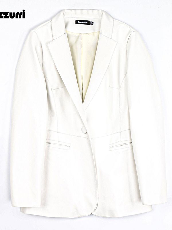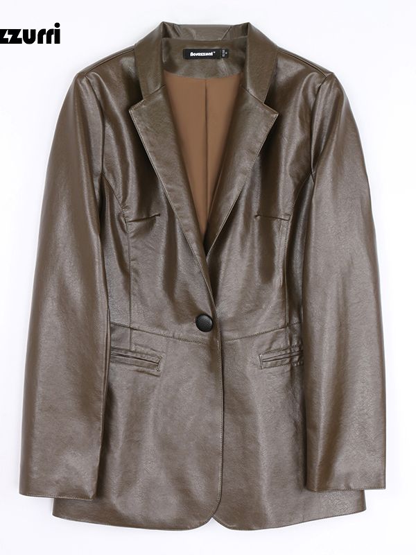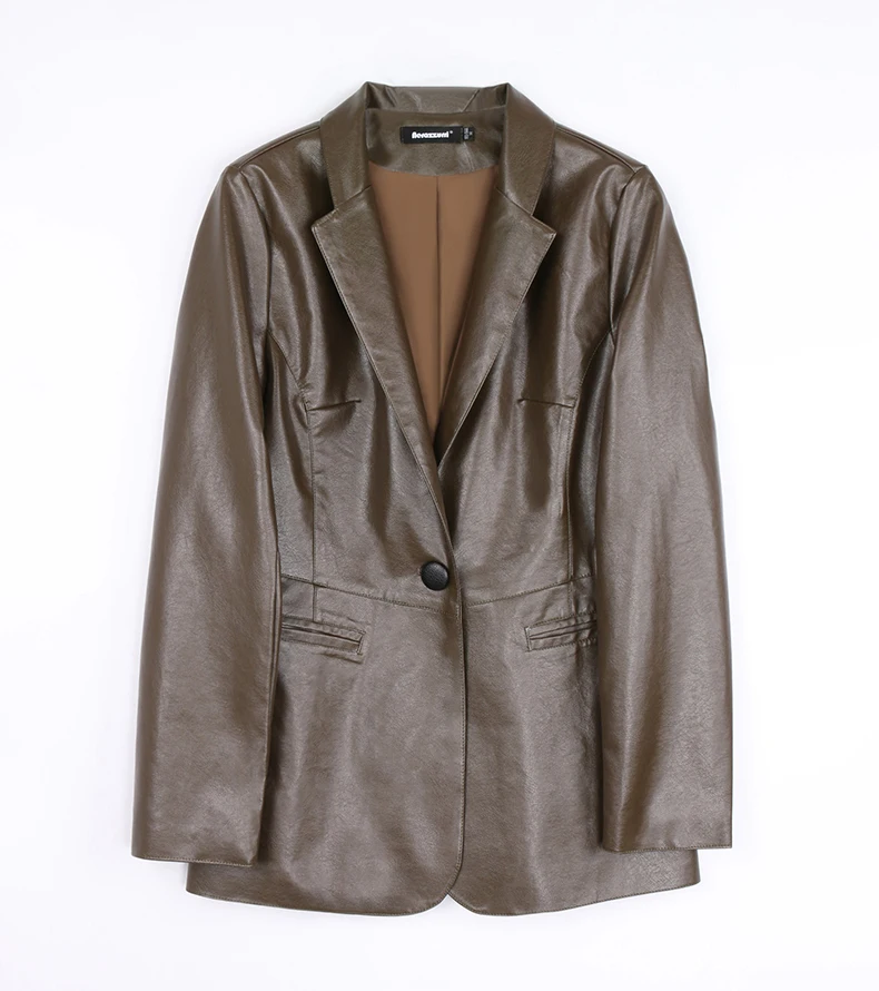 Spring Autumn Black Leather Blazer Women Single Button Slim Fit