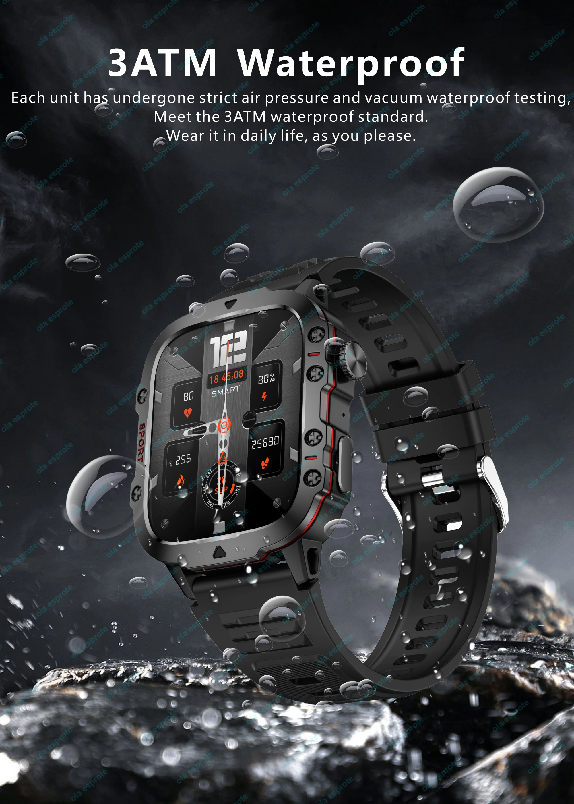 Elevate your outdoor performance with the Military Smart Watch Women 3ATM Outdoor Sport Watch GPS, designed for extreme athletes, hikers, and adventurers who demand durability, precision, and style. Engineered to withstand the toughest environments, this smartwatch features military-grade testing for shock, dust, and water resistance, making it the ultimate tool for navigating, tracking, and monitoring performance during high-intensity activities. Whether you’re trail running, hiking, or swimming, this rugged smartwatch is built to endure and perform.