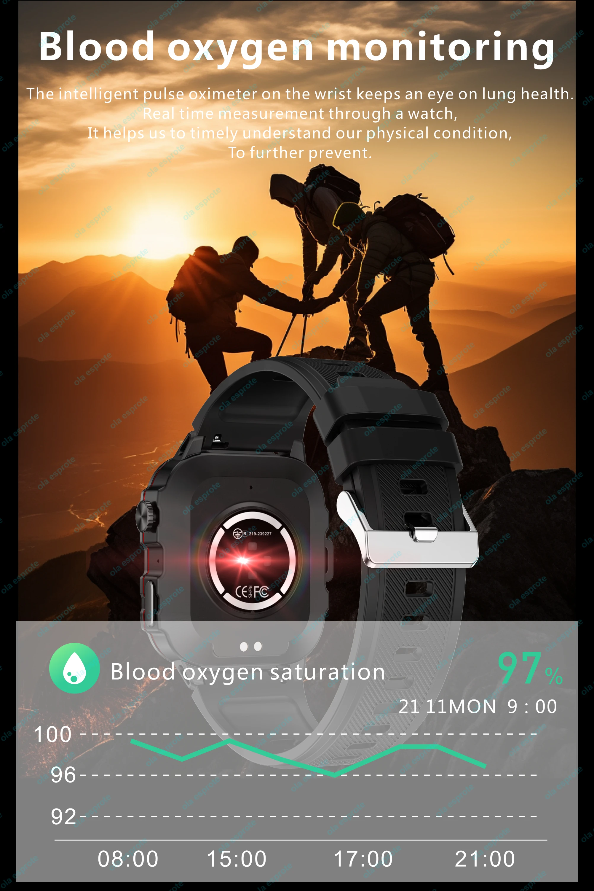 Long-Lasting Battery Life: Smart watch with long battery life designed for multi-day outdoor adventures.