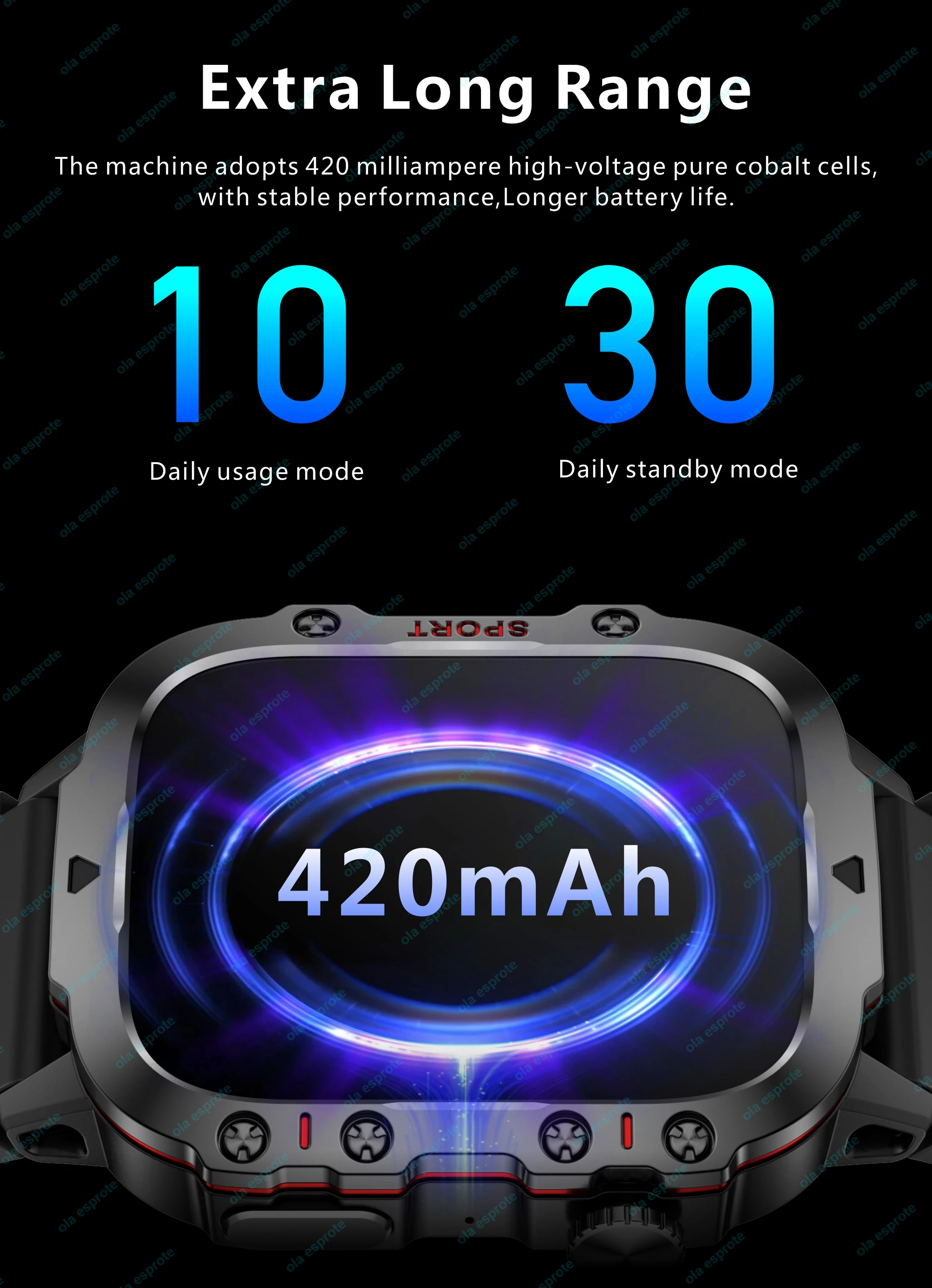• Long-Lasting Battery :With a battery capacity of 420 mAh, this smart watch ensures long-lasting performance, allowing you to stay connected and track your fitness journey all day long.