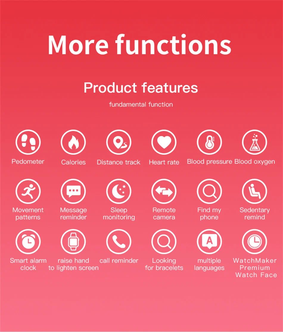 Function: fitness tracker,sleep tracker,Mood Tracker,Message Reminder,Call Reminder,Answer Call,Dial Call,Push Message,Big Three Needles,24 hour instruction,Chronograph,Alarm Clock,Small Second,World Time,Calorie Counter,Power Reserve,Phase of the Moon,Month,Heart Rate Tracker,Interactive Music,Calendar,Compass,Countdown,Calculators