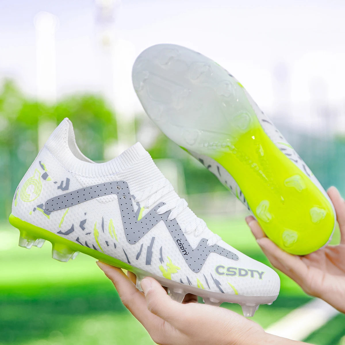 Superior Traction: Engineered for optimal performance, these football boots feature advanced anti-slippery technology, ensuring a secure grip on various surfaces. Perfect for both indoor and outdoor play, they offer reliable traction comparable to top brands like Nike football boots and Adidas soccer cleats.