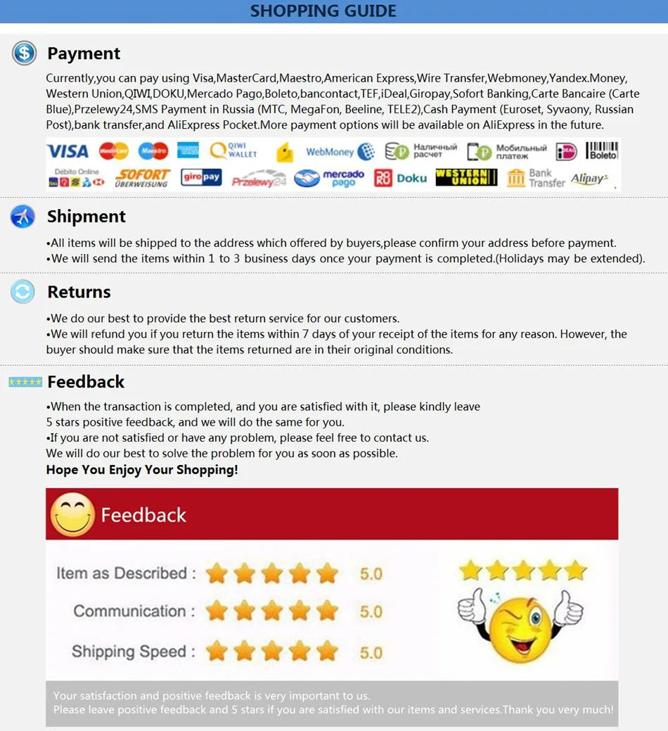 5. Due to lighting effects, monitor's brightness / contrast settings etc, there could be some slight differences in the color tone of the pictures and the actual item!