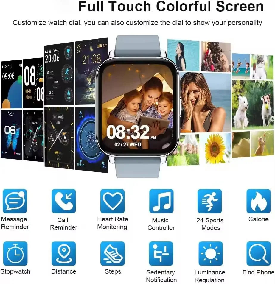 1.Bluetooth Calling :Stay connected on-the-go with the watch's Bluetooth calling feature, allowing you to make and receive calls directly from your wrist.