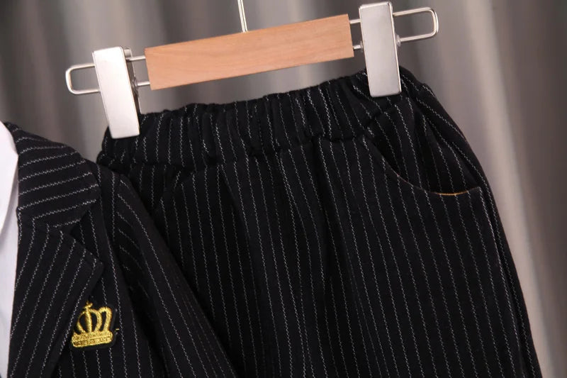 Crafted from soft, high-quality fabric, this kids coat and pants set is gentle on sensitive skin while built to last through repeated wear and washing. The breathable material ensures comfort without overheating, making it suitable as a light layer over a breathable summer outfit during transitional seasons. Reinforced stitching preserves the shape and elegance of the coat, shirt, and pants, providing a durable toddler boy clothes set that maintains its polished look and quality over time.