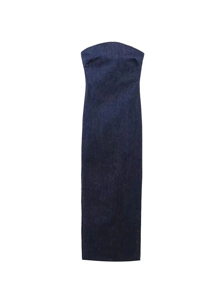 Elevate Your Style: Evening Dresses - Strapless Backless Zipper Split Dress Party Blue Denim Female