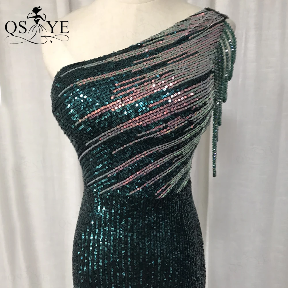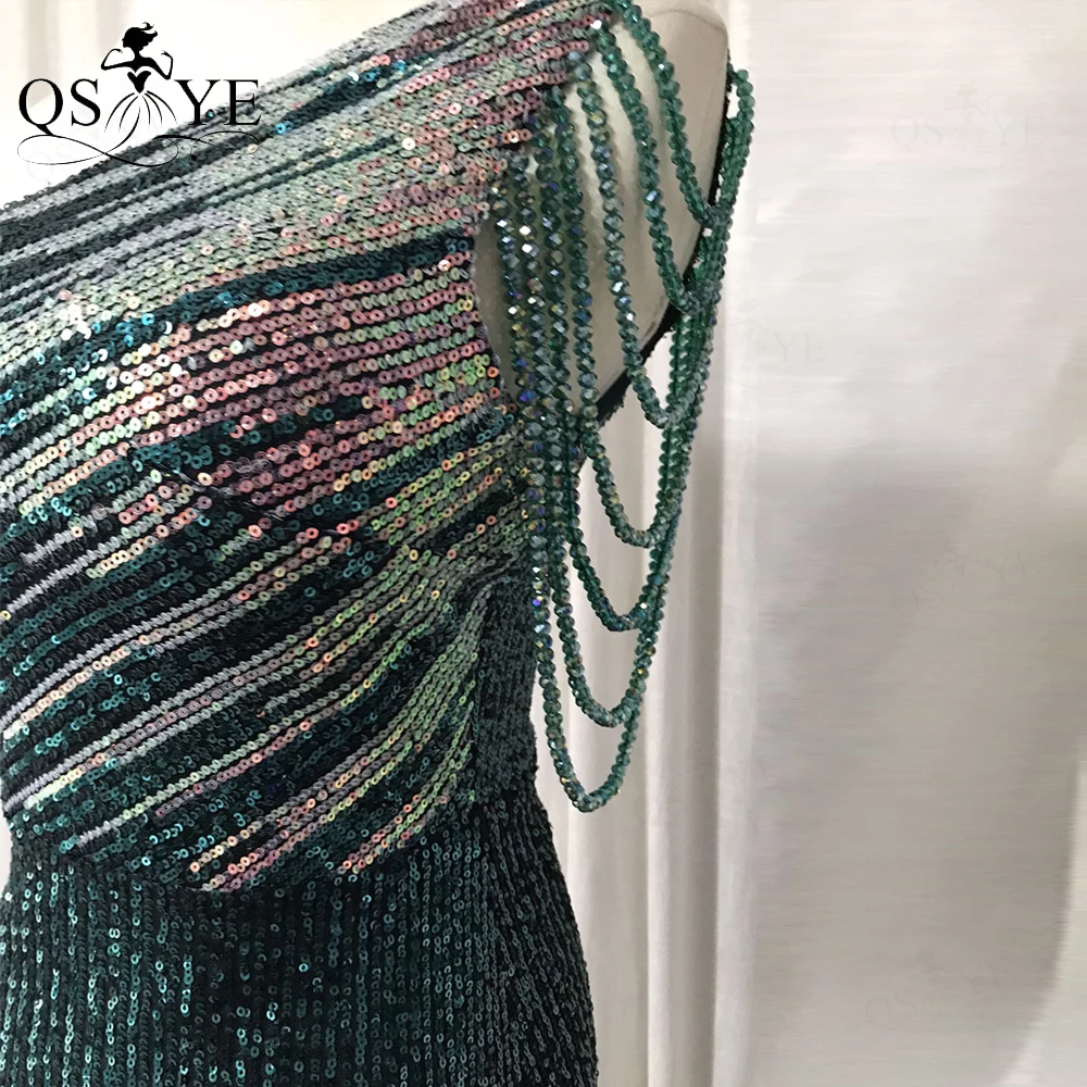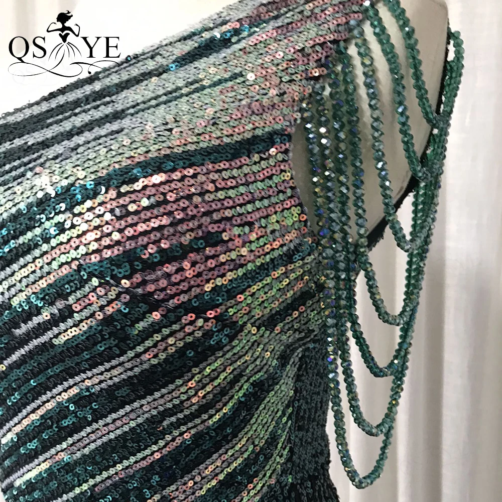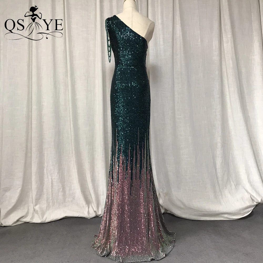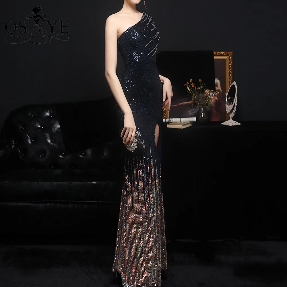 One Shoulder Black Prom Dresses Colorful Fade Beading Straps Evening Gown