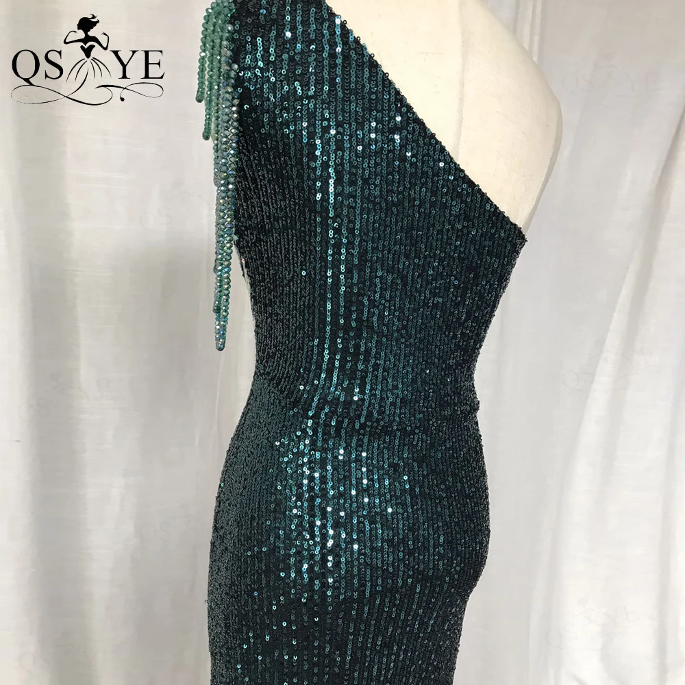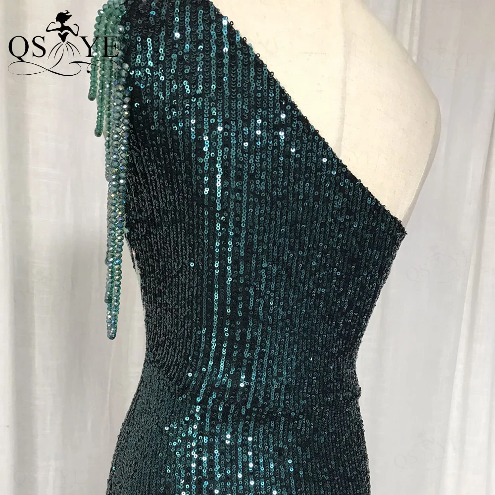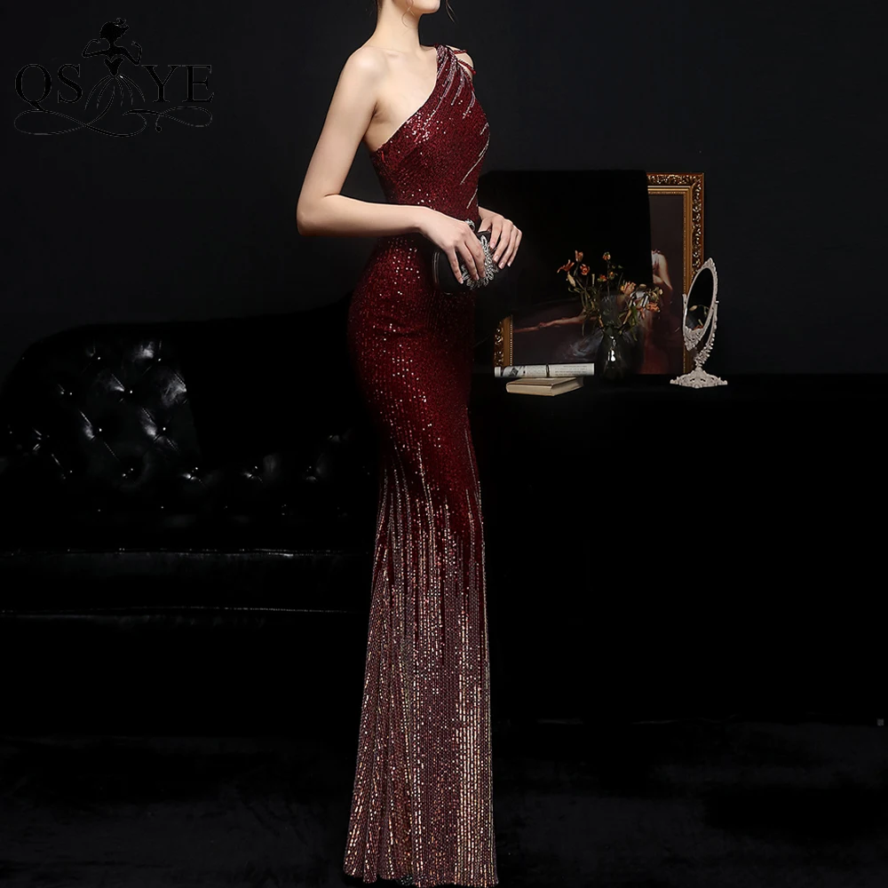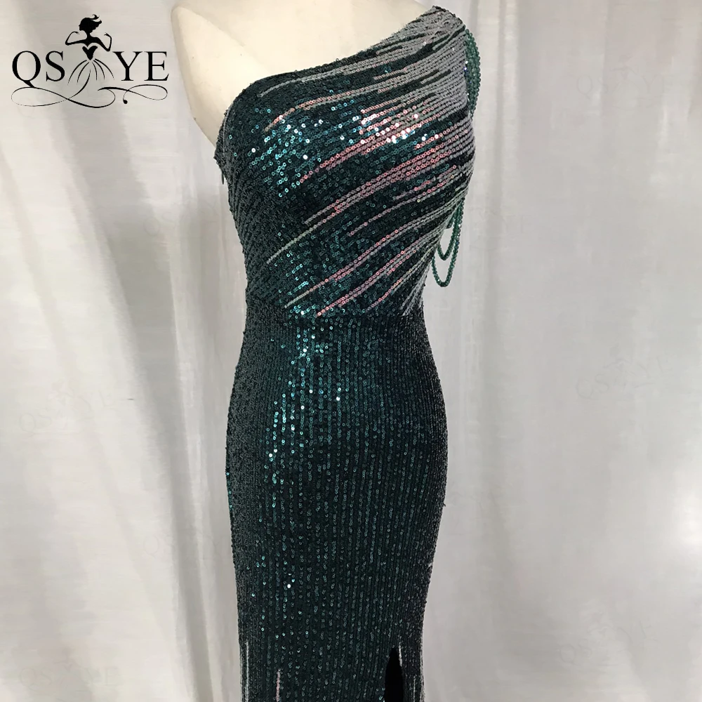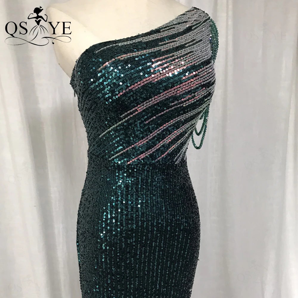 One Shoulder Black Prom Dresses Colorful Fade Beading Straps Evening Gown