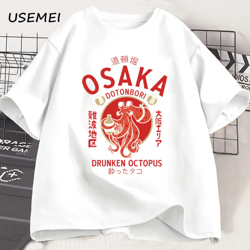 Osaka Dotonbori Drunken Octopus Graphic T Shirts Japanese Style Street Food Lover Tshirt Cotton Vintage Short Sleeve Tees