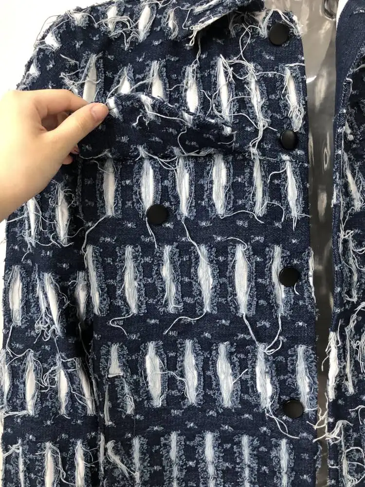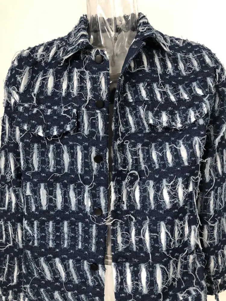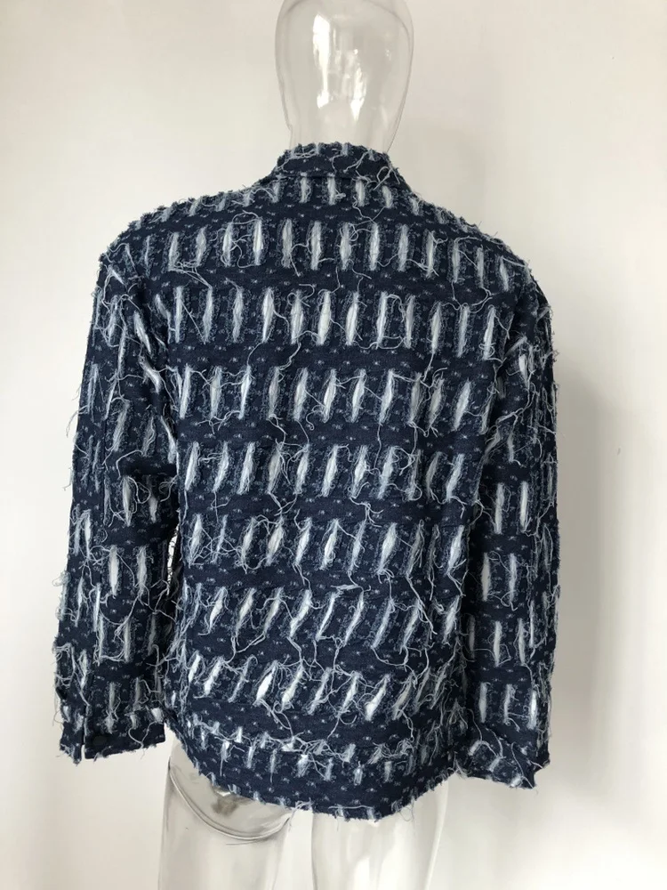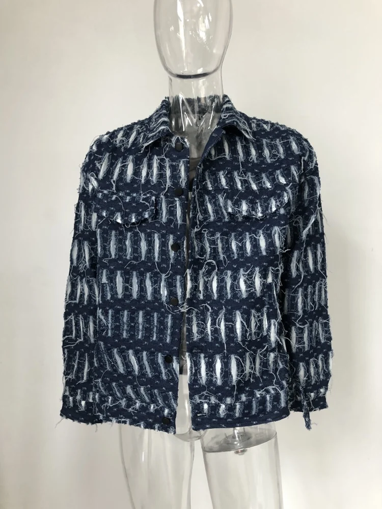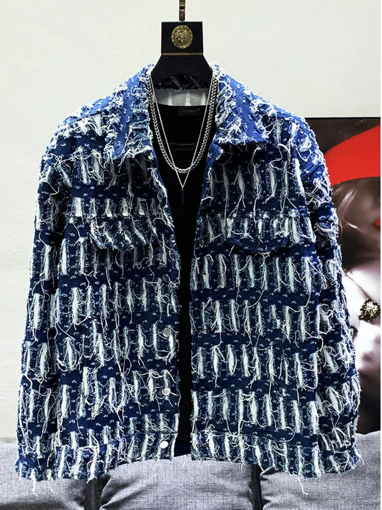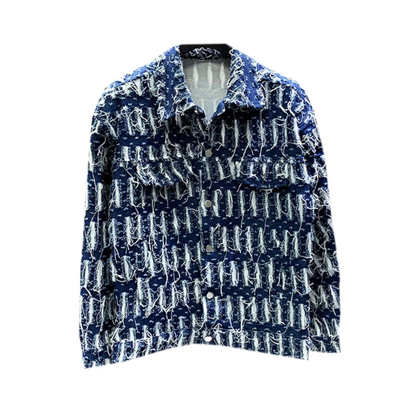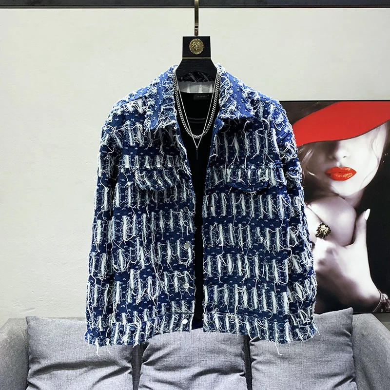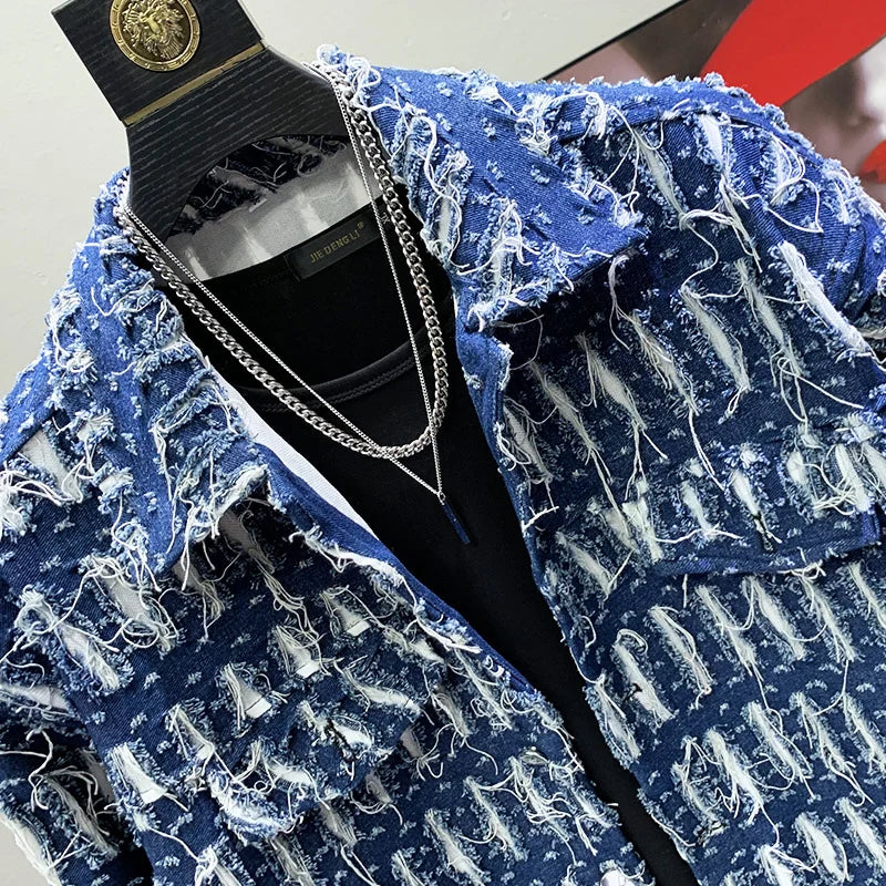 Discover the perfect blend of rugged charm and modern flair with our New Hollow Out Hole Denim Jacket for Men. This solid, loose-fit jacket is designed to make a statement, featuring unique hollow-out holes, single-breasted closure, and stylish tassels. Whether you’re heading out for a casual day or a night out, this denim jacket is your go-to choice.