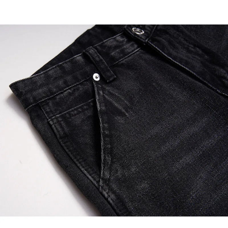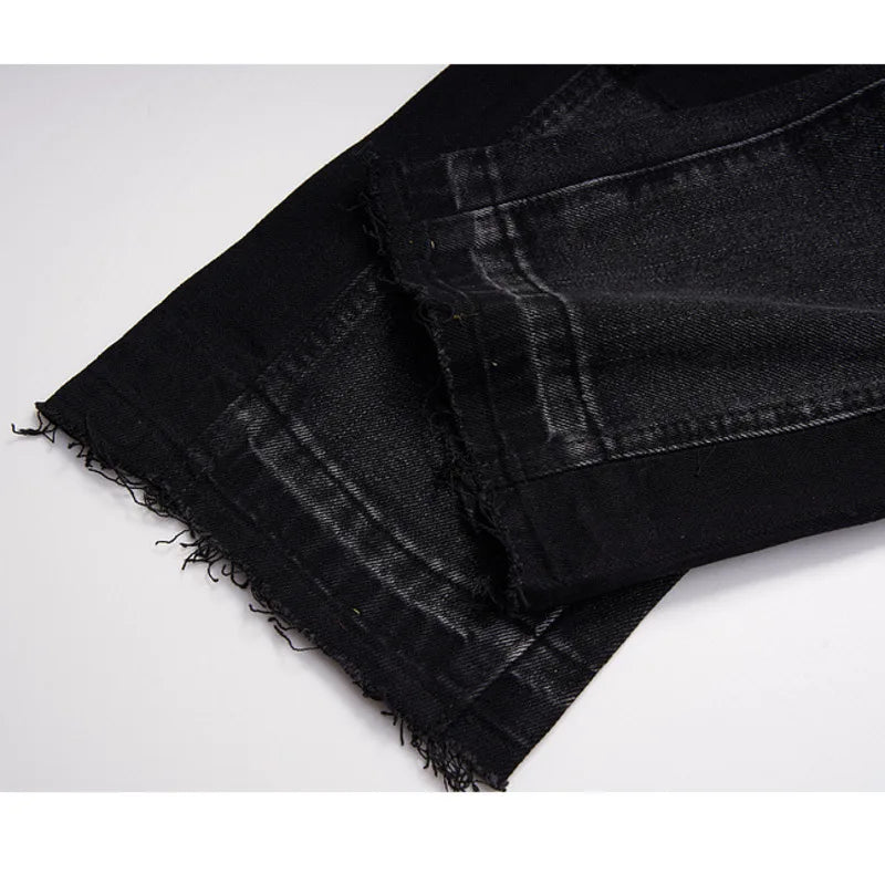 Upgrade your denim game today with our Black Micro Flare Loose Jeans Colorblock Raw Edge Bottom Tide—where style, comfort, and affordability meet!