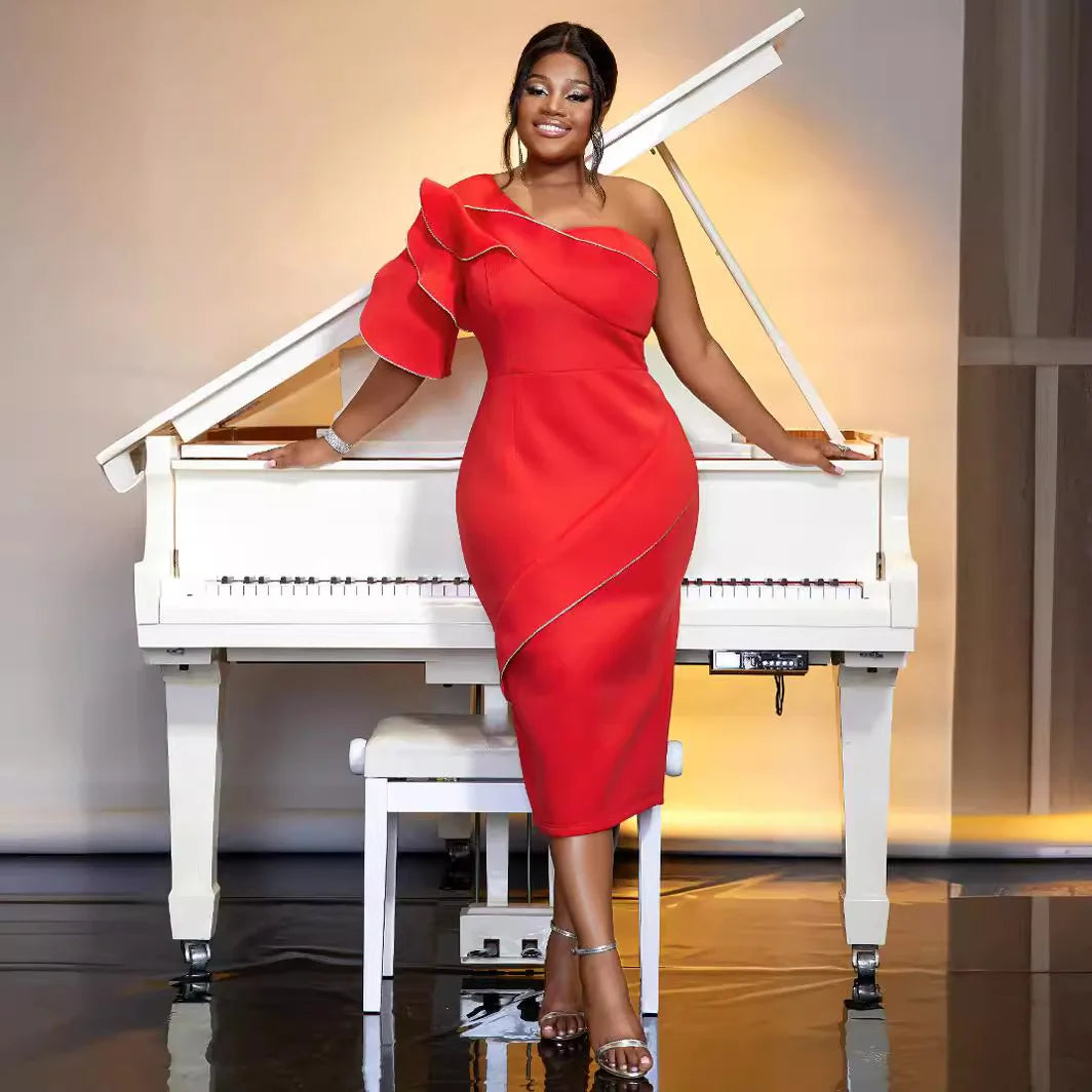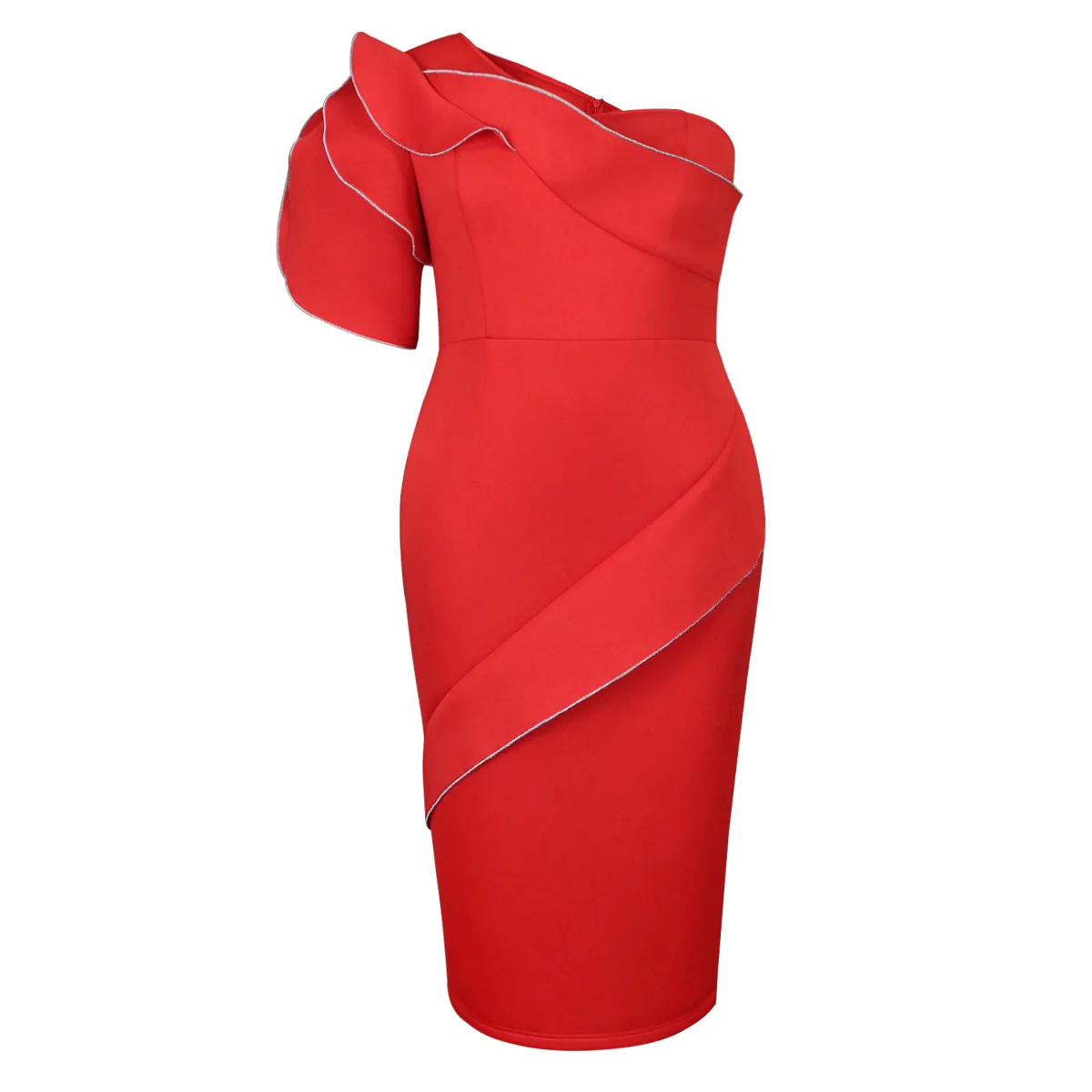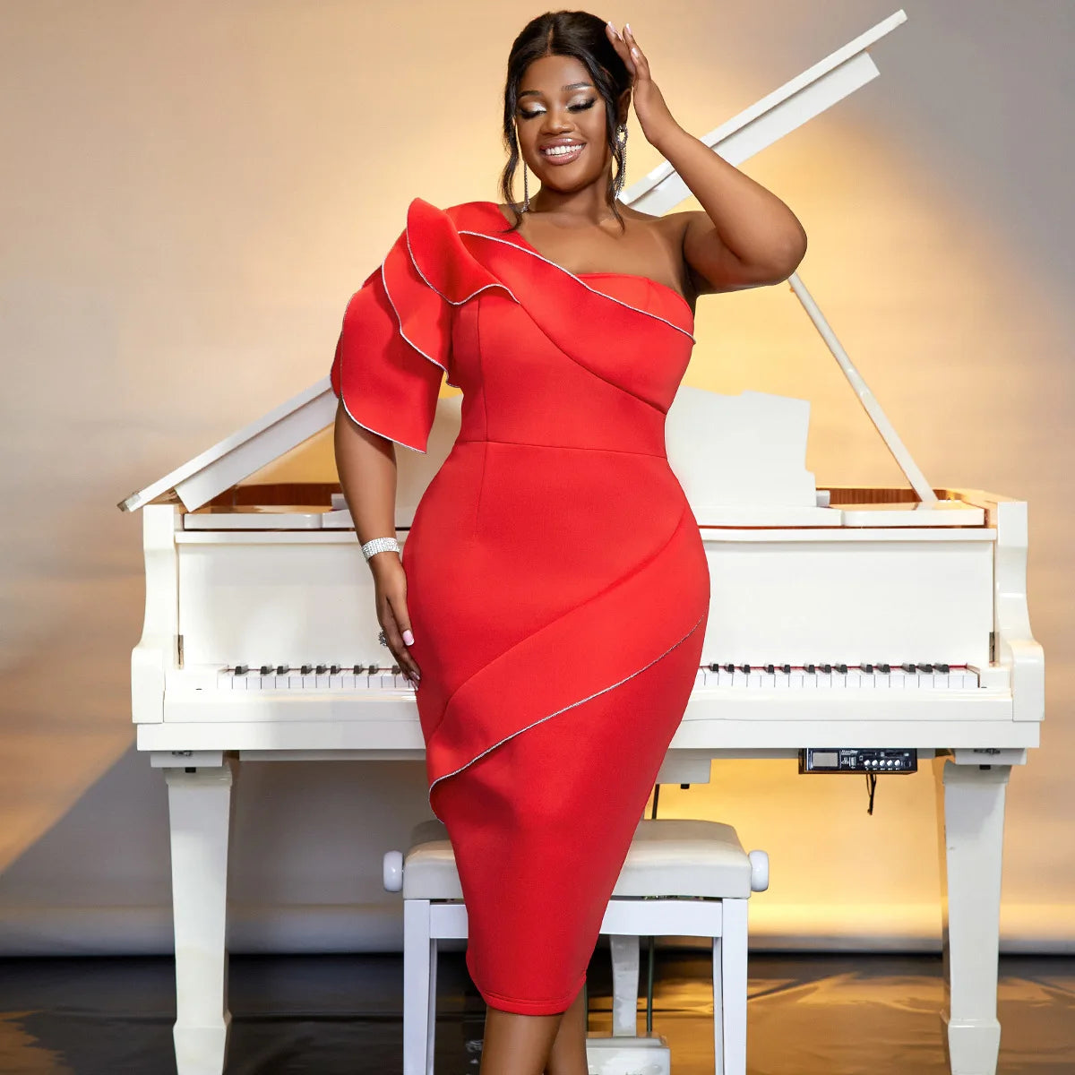 Timeless Elegance and Sophistication Our Plus Size Women's Dresses with a sloping neckline are the epitome of grace and style. The neckline adds a modern twist to the classic silhouette, while the elegant fabric drapes beautifully over your curves. This dress is ideal for party dresses for women, ensuring you stand out and make a lasting impression at any event.