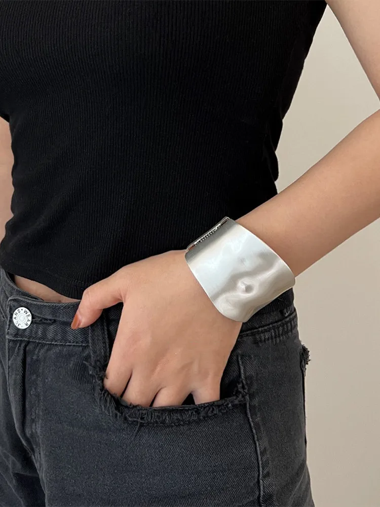 Punk Minimalist Alloy Matte Cuff Bangles For Women Statement Irregularly Wide Big Bangles Bracelet Party Fashion Jewelry Gifts